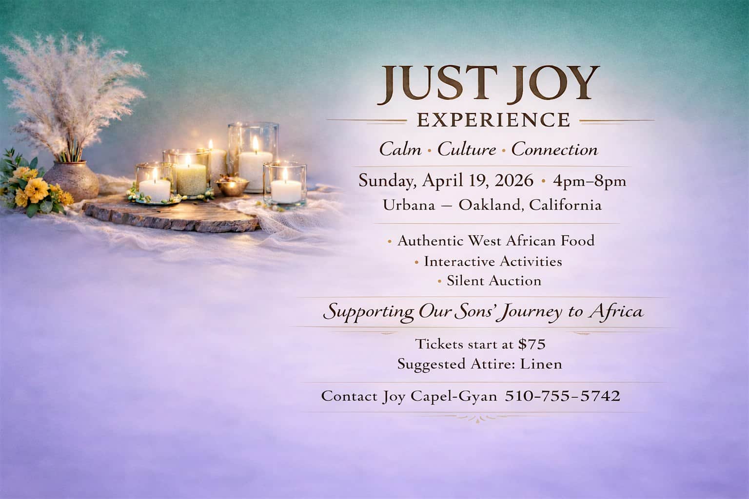 by admin23Feb Just Joy Experience at 415 W Grand Ave – Oakland, CA Just Joy Experience at 415 W Grand Ave – Oakland, CA 2 2 people viewed this event. A welcoming Oakland gathering featuring authentic West African cuisine, interactive activities, and a relaxed mix-and-mingle atmosphere. Tickets-RSVP Link Date And Time Sunday, April 19th, 2026 04:00 PM (PST) Venue 415 W Grand Ave Location 415 West Grand Avenue, Oakland, CA 94612 Event Types Community & CultureParty or Social Gathering Event Category CaliforniaOakland Share With Friends Facebook Twitter Linkedin Xing Pinterest Share This Post:
