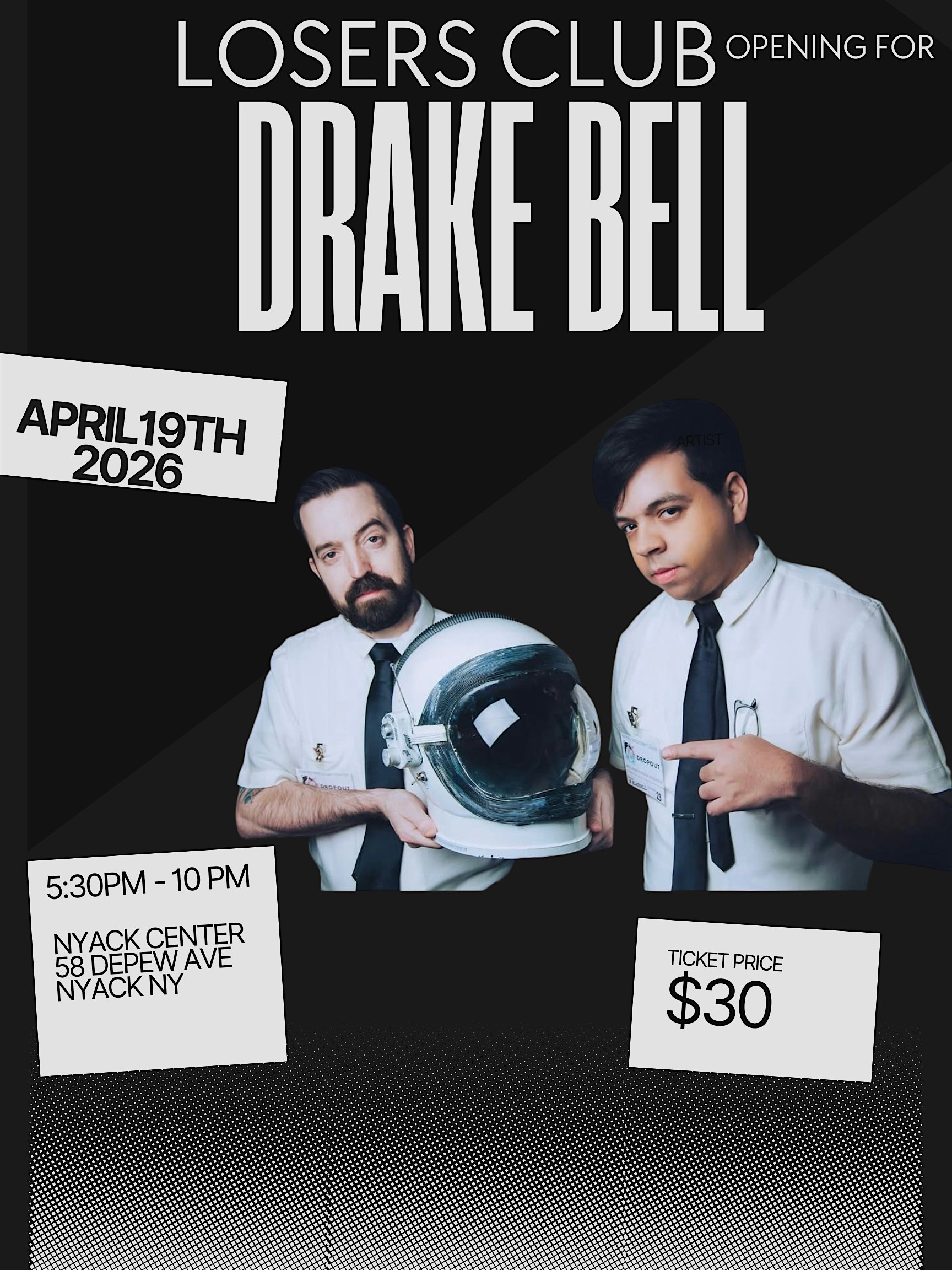 by admin27Feb Losers Club Opening For Drake Bell at Nyack Center – Nyack, NY Losers Club Opening For Drake Bell at Nyack Center – Nyack, NY 2 2 people viewed this event. Kick off the night with Losers Club setting the vibe before Drake Bell takes the stage for an unforgettable show. Tickets-RSVP Link Date And Time Sunday, April 19th, 2026 @ 10:00 AM Location 58 Depew Avenue, Nyack, NY 10960 Event Types Concert or PerformanceMusic Event Category New York Share With Friends Facebook Twitter Linkedin Xing Pinterest Share This Post: