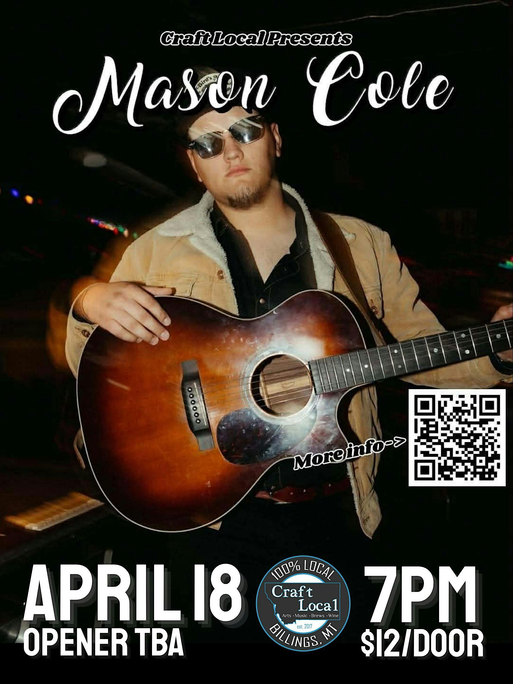 by admin13Feb Mason Cole (w/Full Band) at 2501 Montana Ave – Billings, MT Mason Cole (w/Full Band) at 2501 Montana Ave – Billings, MT 4 4 people viewed this event. Mason Cole performs at Craft Local on April 18, 2026. Doors 6pm. Show 7pm. Tickets $12. Opener TBA Tickets-RSVP Link Date And Time Sunday, April 19th, 2026 01:00 AM (PST) Venue 2501 Montana Ave Location 2501 Montana Avenue, Billings, MT 59101 Event Types Concert or PerformanceMusic Event Category Montana Share With Friends Facebook Twitter Linkedin Xing Pinterest Share This Post: