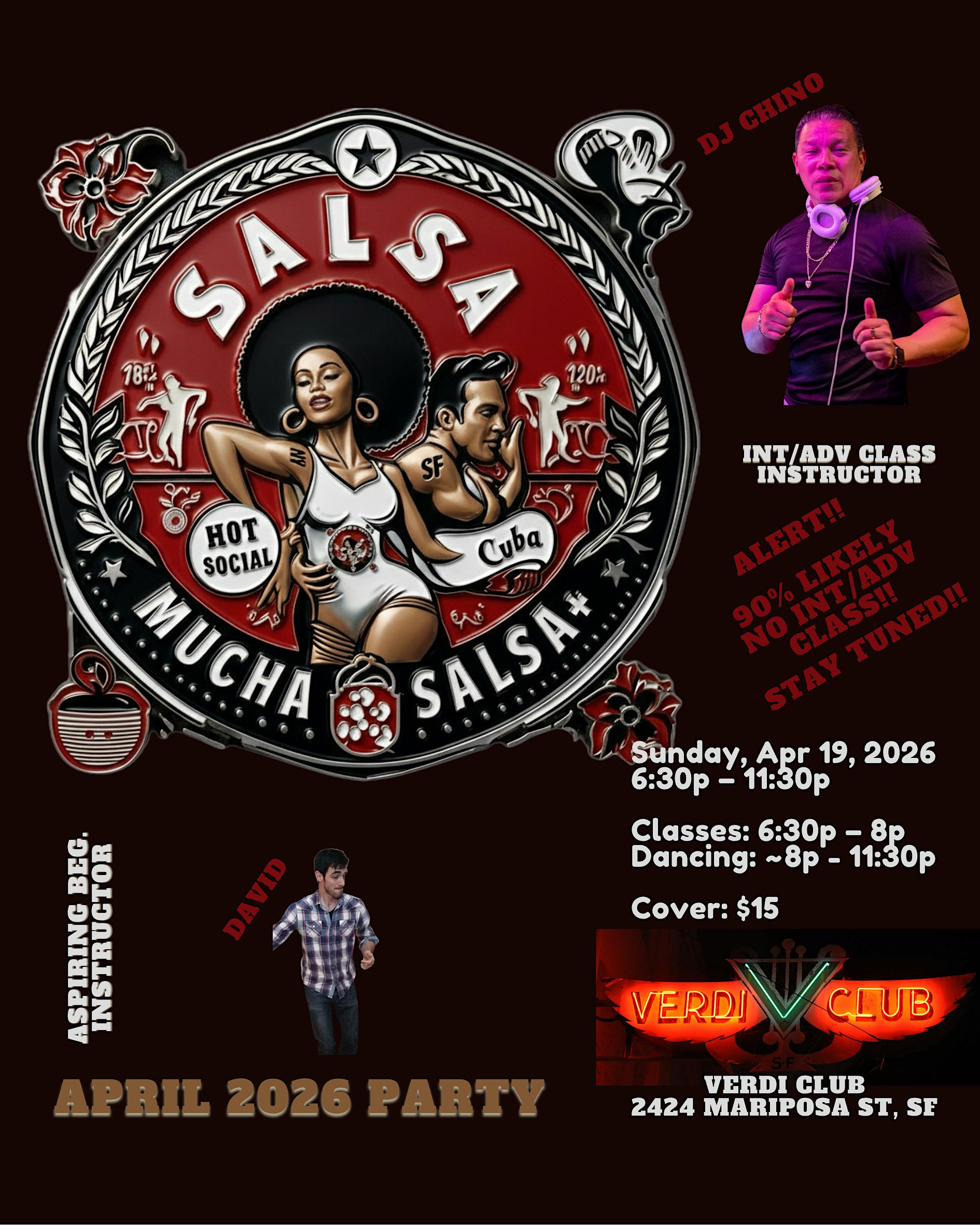 Mucha Salsa+ April Party @ Verdi Club on April 19th!!