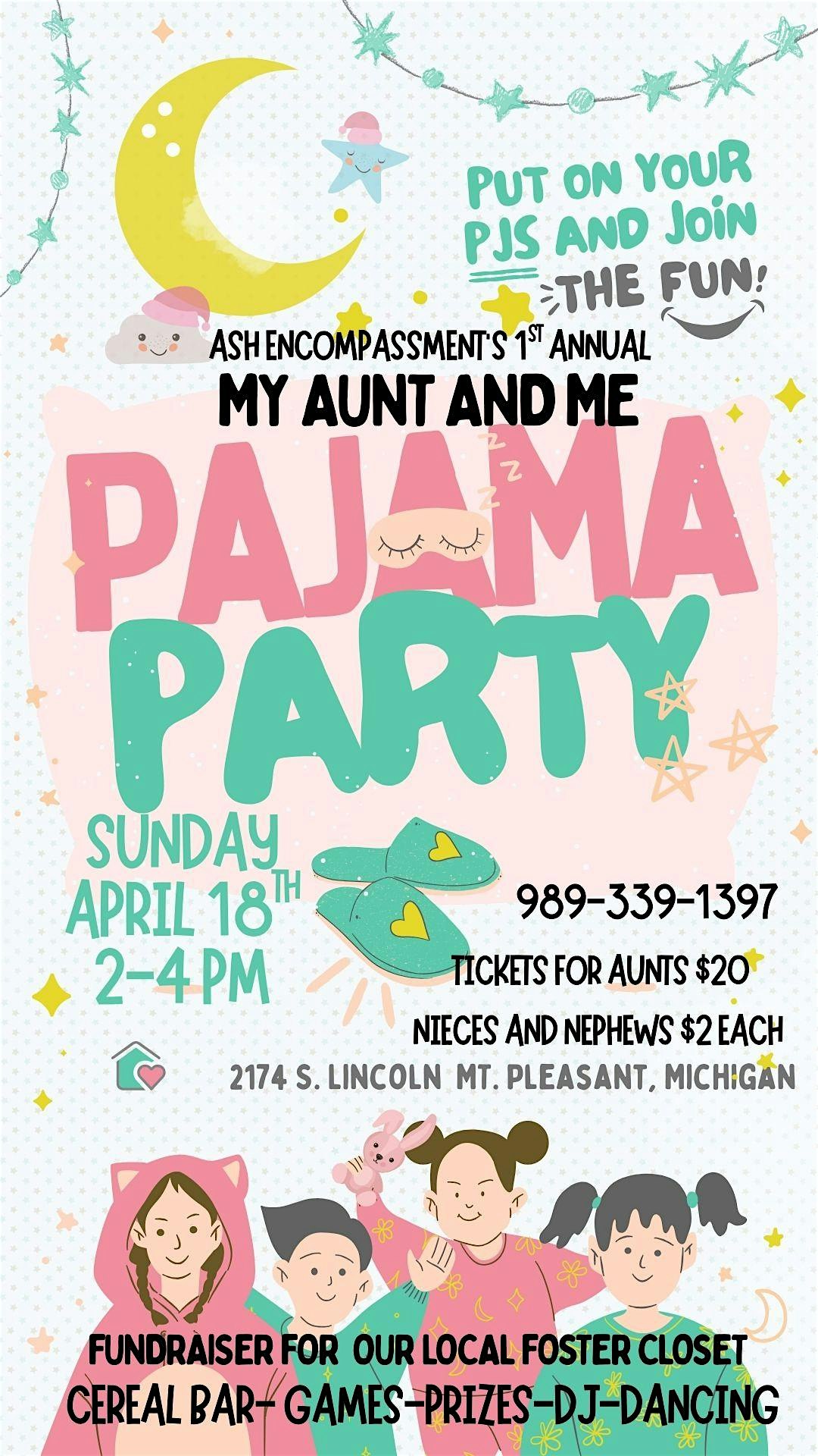 by admin13Feb My Aunt and Me Pajama Party at 2174 S Lincoln Rd – Mount Pleasant, MI My Aunt and Me Pajama Party at 2174 S Lincoln Rd – Mount Pleasant, MI 2 2 people viewed this event. Aunts, nieces & nephews dress comfy, bring your best dance moves, and make memories that matter! Cereal, games, a live DJ, & dancing. Tickets-RSVP Link Date And Time Sunday, April 19th, 2026 06:00 PM (PST) Venue 2174 S Lincoln Rd Location 2174 South Lincoln Road, Mount Pleasant, MI 48858 Event Types Charity & CausesParty or Social Gathering Event Category Michigan Share With Friends Facebook Twitter Linkedin Xing Pinterest Share This Post: