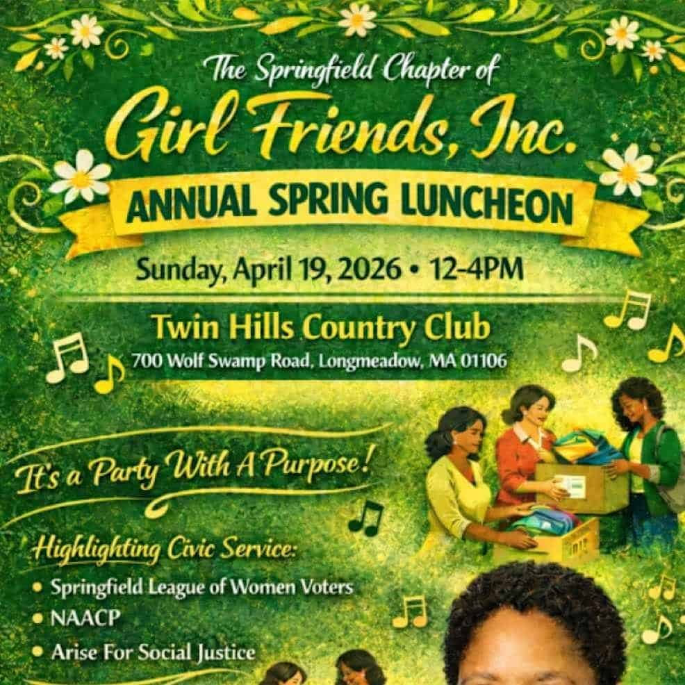 by admin23Feb Party with a Purpose – Spfld Chapter of Girl Friends Annual Spring Luncheon at Twin Hills Country Club – Longmeadow, MA Party with a Purpose – Spfld Chapter of Girl Friends Annual Spring Luncheon at Twin Hills Country Club – Longmeadow, MA 3 3 people viewed this event. Come hang with the Springfield Chapter of Girl Friends, Inc. for good vibes and great eats at our spring luncheon! Tickets-RSVP Link Date And Time Sunday, April 19th, 2026 12:00 PM (PST) Venue Twin Hills Country Club Location 700 Wolf Swamp Road, Longmeadow, MA 1106 Event Types Community & CultureParty or Social Gathering Event Category Massachusetts Share With Friends Facebook Twitter Linkedin Xing Pinterest Share This Post:
