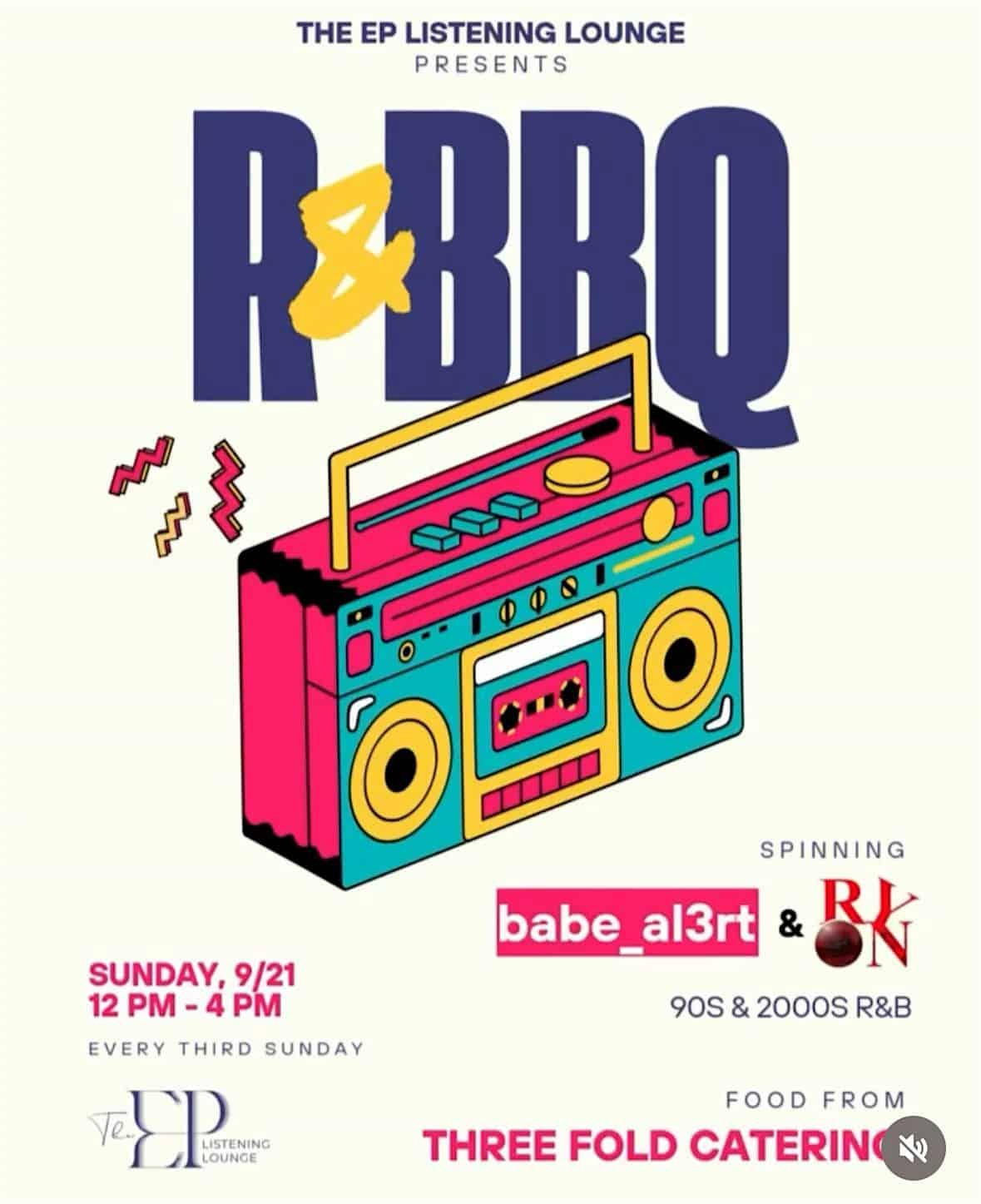 by admin24Feb R&BBQ at The EP Listening Lounge – Reno, NV R&BBQ at The EP Listening Lounge – Reno, NV 1 1 people viewed this event. Those nostalgic 2000 R&B jams provided by DJ Ryon and babe_al3rt, and bbq by 3 Fold. The right Sunday vibe to wrap your week up Tickets-RSVP Link Date And Time Sunday, April 19th, 2026 12:00 PM (PST) Venue The EP Listening Lounge Location 1300 South Wells Avenue, Reno, NV 89502 Event Types Food & DrinkParty or Social Gathering Event Category NevadaReno Share With Friends Facebook Twitter Linkedin Xing Pinterest Share This Post: