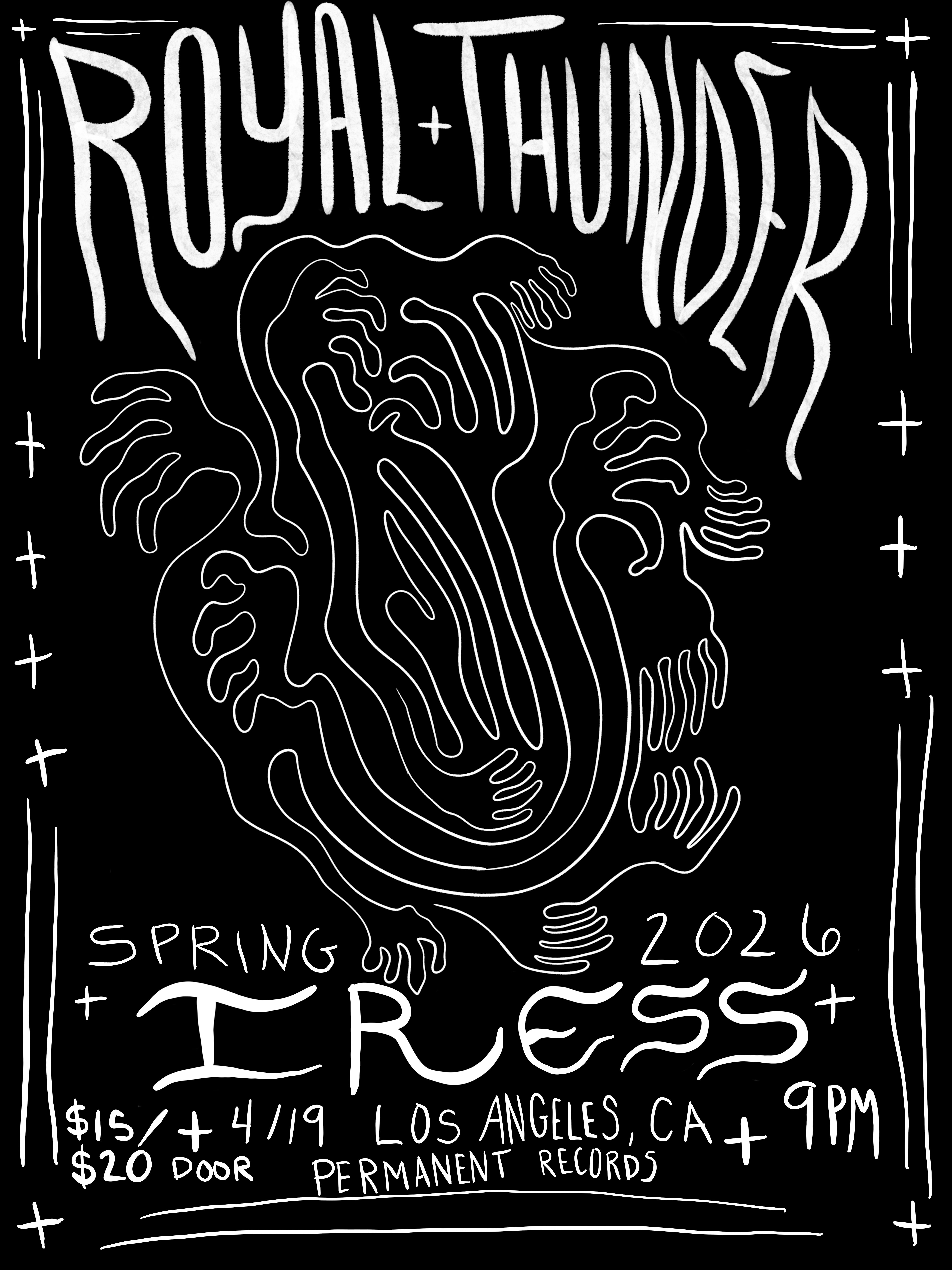 by admin24Feb Royal Thunder, Iress at Permanent Records Roadhouse – Los Angeles, CA Royal Thunder, Iress at Permanent Records Roadhouse – Los Angeles, CA 2 2 people viewed this event. This event is 21+ only. We will check IDs at the door. There are no refunds if you are turned away. Tickets-RSVP Link Date And Time Sunday, April 19th, 2026 09:00 PM (PST) Venue Permanent Records Roadhouse Location 1906 Cypress Avenue, Los Angeles, CA 90065 Event Types Concert or PerformanceMusic Event Category CaliforniaLos Angeles Share With Friends Facebook Twitter Linkedin Xing Pinterest Share This Post: