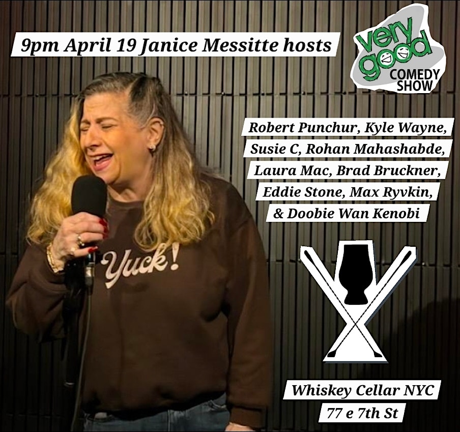 Very Good Comedy at Whiskey Cellar NYC April 19 at Whiskey Cellar NYC – New York, NY Very Good Comedy at Whiskey Cellar NYC April 19 at Whiskey Cellar NYC – New York, NY 2 2 people viewed this event. Very Good Comedy brings some of NYC's very goodest standups to Whiskey Cellar for a showcase! Tickets-RSVP Link Register for event Date And Time Sunday, April 19th, 2026 @ 09:00 PM Location 77 East 7th Street, New York, NY 10003 Event Types Concert or PerformancePerforming & Visual Arts Event Category New YorkNew York City Share With Friends Facebook Twitter Linkedin Xing Pinterest
