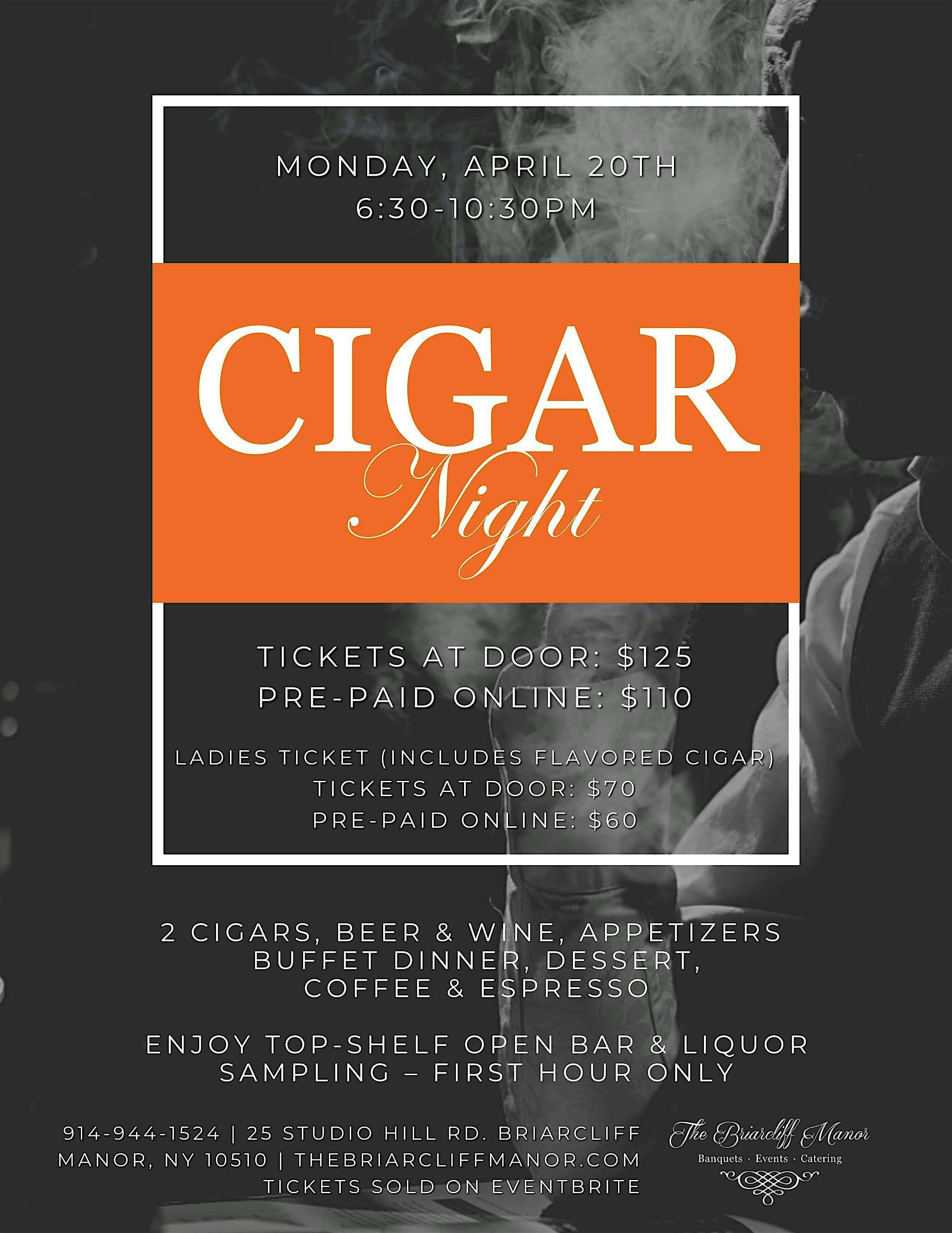 by admin23Feb Cigar Night on April 20th at The Briarcliff Manor – Briarcliff Manor, NY Cigar Night on April 20th at The Briarcliff Manor – Briarcliff Manor, NY 2 2 people viewed this event. Do you enjoy Cigars, Beer, Wine & Delicious Food? RSVP now for Cigar Night at The Briarcliff Manor! Tickets-RSVP Link Date And Time Monday, April 20th, 2026 06:00 PM (PST) Venue The Briarcliff Manor Location 25 Studio Hill Rd., Briarcliff Manor, NY 10510 Event Types Food & DrinkParty or Social Gathering Event Category New York Share With Friends Facebook Twitter Linkedin Xing Pinterest Share This Post: