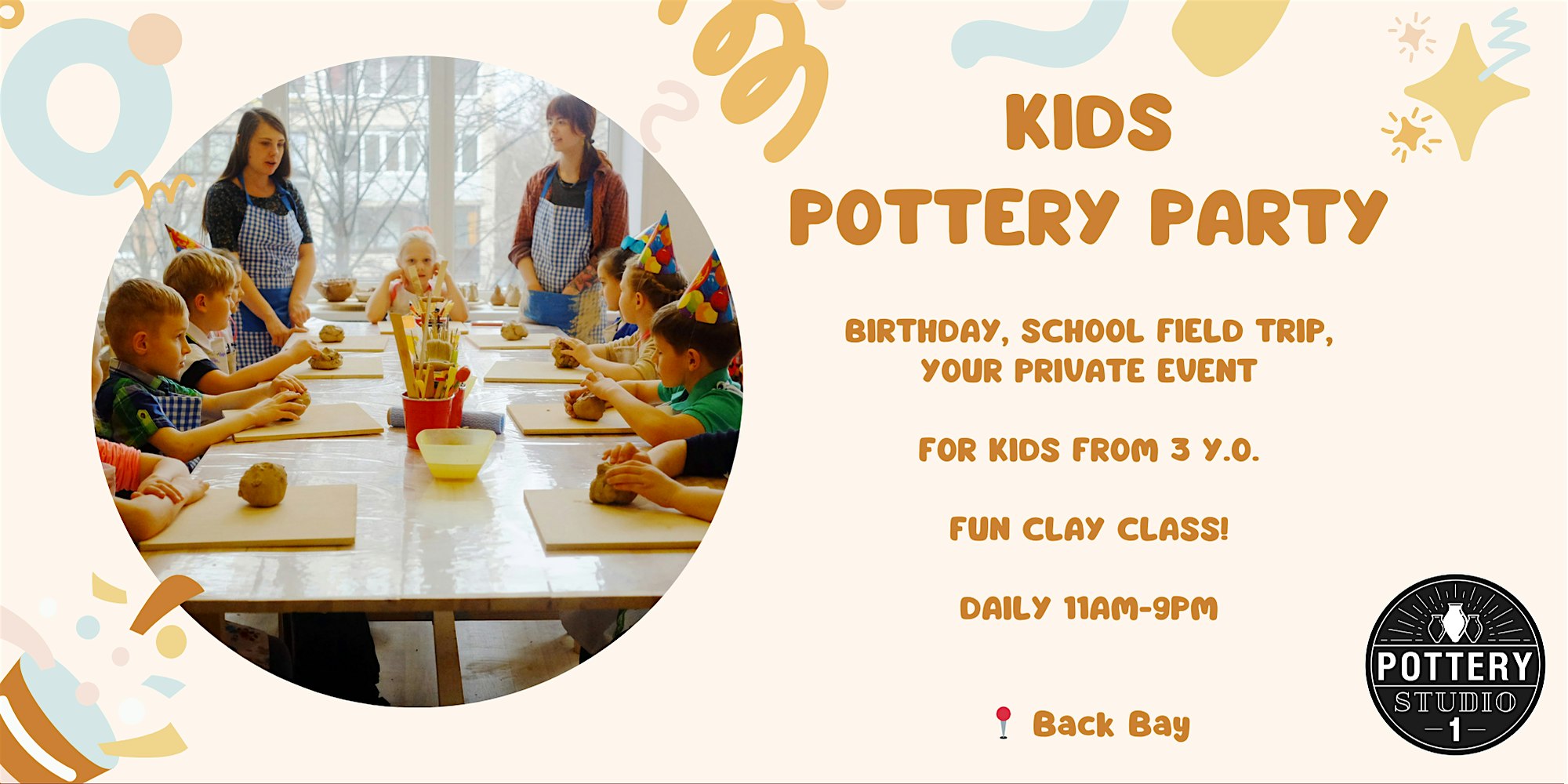 Kids’ Pottery Party – Back Bay at 279 Newbury St – Boston, MA Kids’ Pottery Party – Back Bay at 279 Newbury St – Boston, MA 3 3 people viewed this event. Your kids birthday party! Have an experience of pottery together! Tickets-RSVP Link Register for event Date And Time Monday, April 20th, 2026 @ 10:00 AM Location 279 Newbury Street, Boston, MA 2116 Event Types Party or Social Gathering Event Category BostonMassachusetts Share With Friends Facebook Twitter Linkedin Xing Pinterest