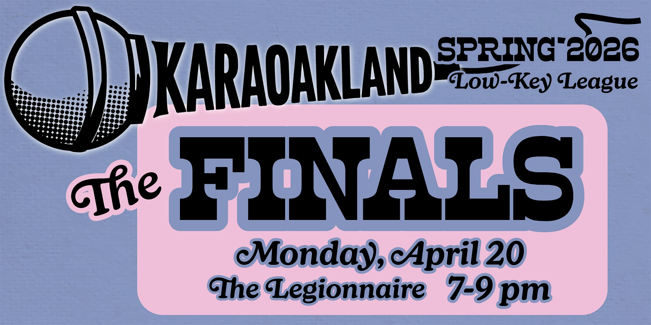 KaraOakland Low-Key League FINALS • April 20th • The Legionnaire, Oakland • League Play 7–9 PM • Open Karaoke After 9 PM • Free to attend • 21+
