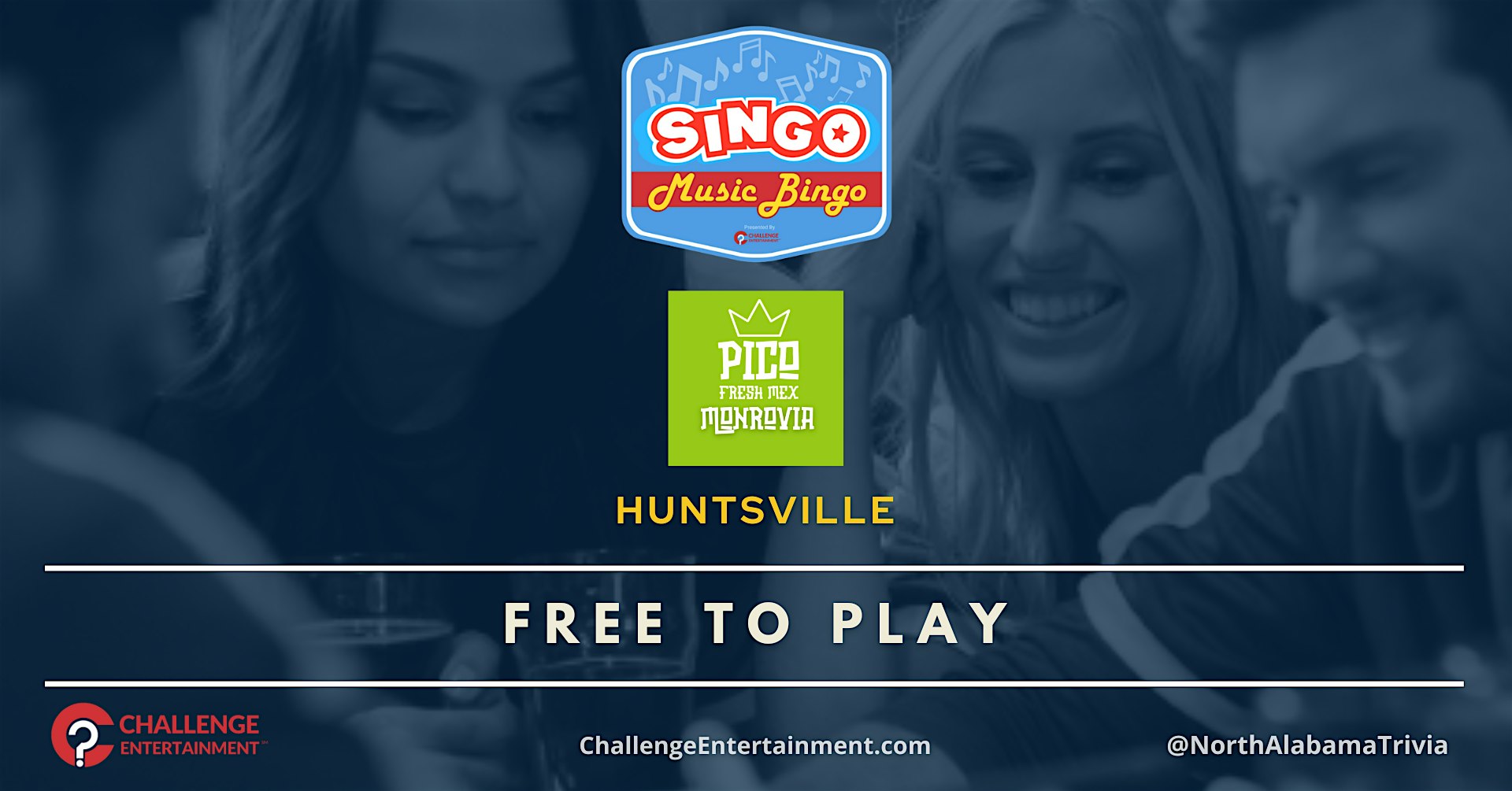 Weekly SINGO Music Bingo Nights at Pico Fresh Mex – Huntsville – Monrovia at Pico Fresh Mex – Huntsville, AL Weekly SINGO Music Bingo Nights at Pico Fresh Mex – Huntsville – Monrovia at Pico Fresh Mex – Huntsville, AL 3 3 people viewed this event. Weekly SINGO Music Bingo Nights at Pico Fresh Mex – Huntsville Tickets-RSVP Link Register for event Date And Time Monday, April 20th, 2026 @ 06:00 PM Location 1947 Blake Bottom Road Northwest, Huntsville, AL 35806 Event Types Food & DrinkParty or Social Gathering Event Category AlabamaHuntsville Share With Friends Facebook Twitter Linkedin Xing Pinterest