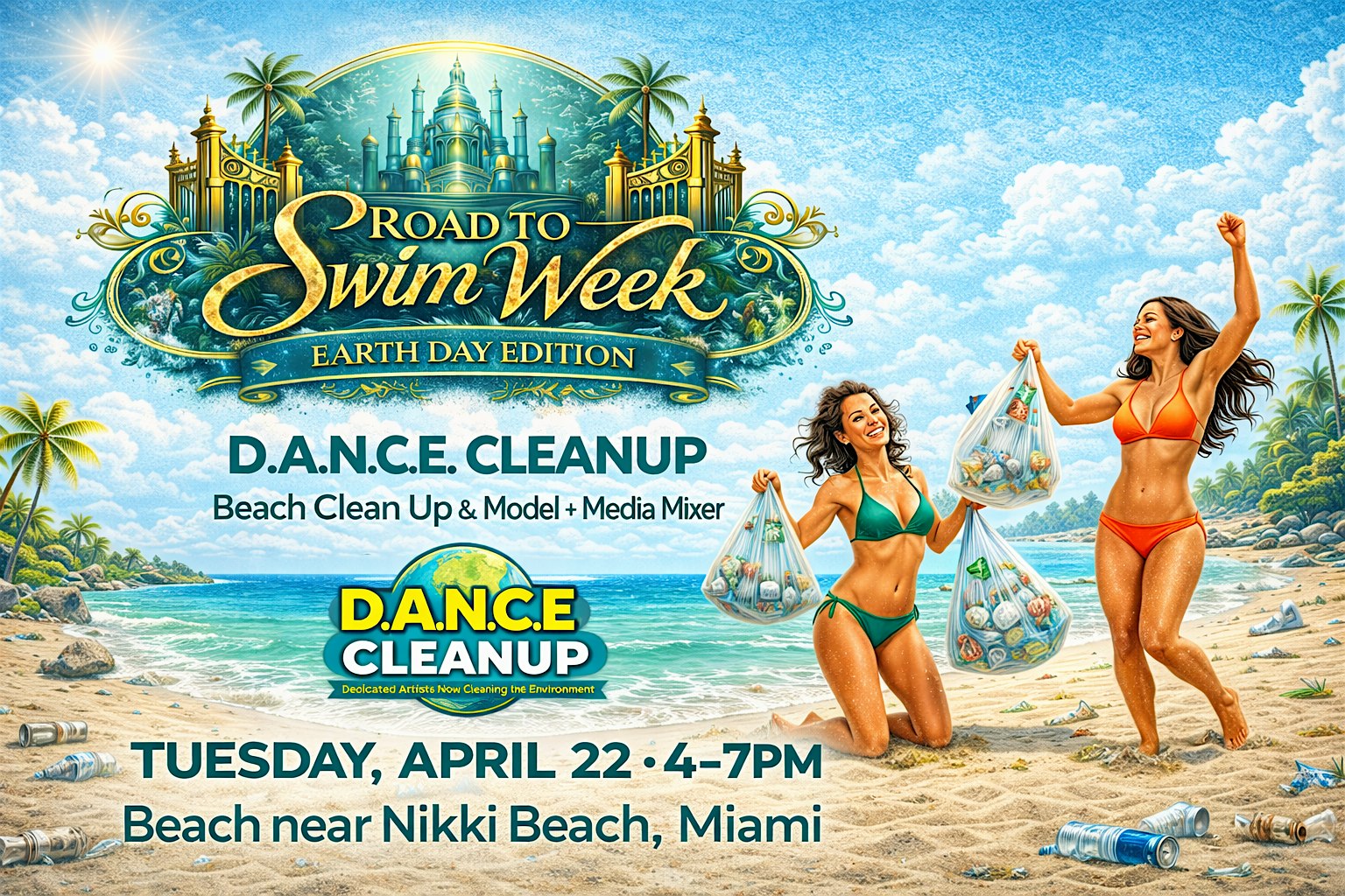 by admin24Feb Earth Day Dance Cleanup at Nikki Beach Miami Beach – Miami Beach, FL Earth Day Dance Cleanup at Nikki Beach Miami Beach – Miami Beach, FL 5 5 people viewed this event. Beach Clean up DANCE Clean Up Road to Swim Week Tickets-RSVP Link Date And Time Wednesday, April 22nd, 2026 @ 04:00 PM Location 1 Ocean Drive, Miami Beach, FL 33139 Event Types Community & CultureParty or Social Gathering Event Category FloridaMiami Share With Friends Facebook Twitter Linkedin Xing Pinterest Share This Post: