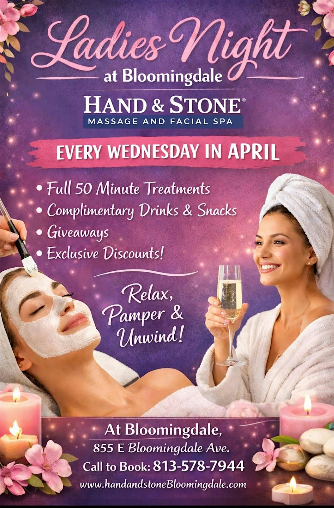 Ladies Day & Night at 855 E Bloomingdale Ave suite a – Brandon, FL Ladies Day & Night at 855 E Bloomingdale Ave suite a – Brandon, FL 4 4 people viewed this event. Ladies join us every Wednesday in April for exclusive give aways, deals and an hour to yourself. or bring a friend too! Tickets-RSVP Link Register for event Date And Time Wednesday, April 22nd, 2026 @ 10:00 AM Location 855 E Bloomingdale Ave suite a 855 East Bloomingdale Avenue, Brandon, FL 33511 Event Types Fashion & BeautyOtherParty or Social Gathering Event Category FloridaTampa Share With Friends Facebook Twitter Linkedin Xing Pinterest