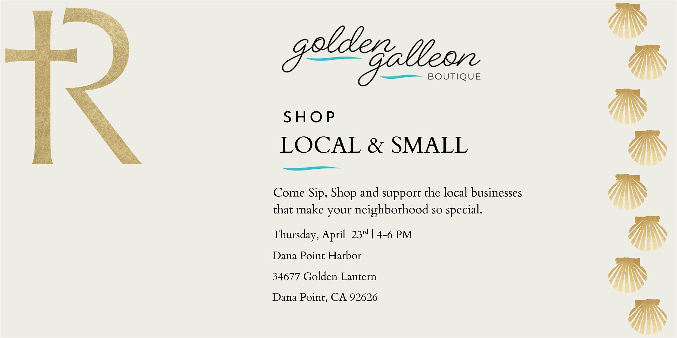 Come and shop at Golden Galleons and preview the newest designs by local designer Rizen Jewelry just in time for Mother’s Day. Enjoy community, sip on drinks, and light bites as you shop Golden Galleon—a beloved boutique that’s been a Dana Point Harbor treasure since 1979!