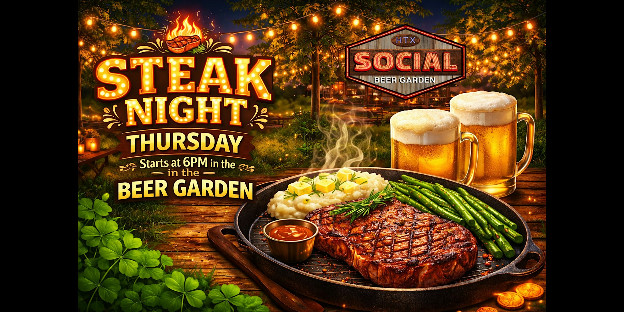 Steak Night at Social Beer Garden HTX – Houston, TX Steak Night at Social Beer Garden HTX – Houston, TX 1 1 people viewed this event. Get ready to sizzle and indulge in juicy steaks at our upcoming Steak Night event, starts at 6pm! Tickets-RSVP Link Register for event Date And Time Thursday, April 23rd, 2026 @ 06:00 PM Location 3101 San Jacinto Street, Houston, TX 77004 Event Types Dinner or GalaFood & Drink Event Category HoustonTexas Share With Friends Facebook Twitter Linkedin Xing Pinterest
