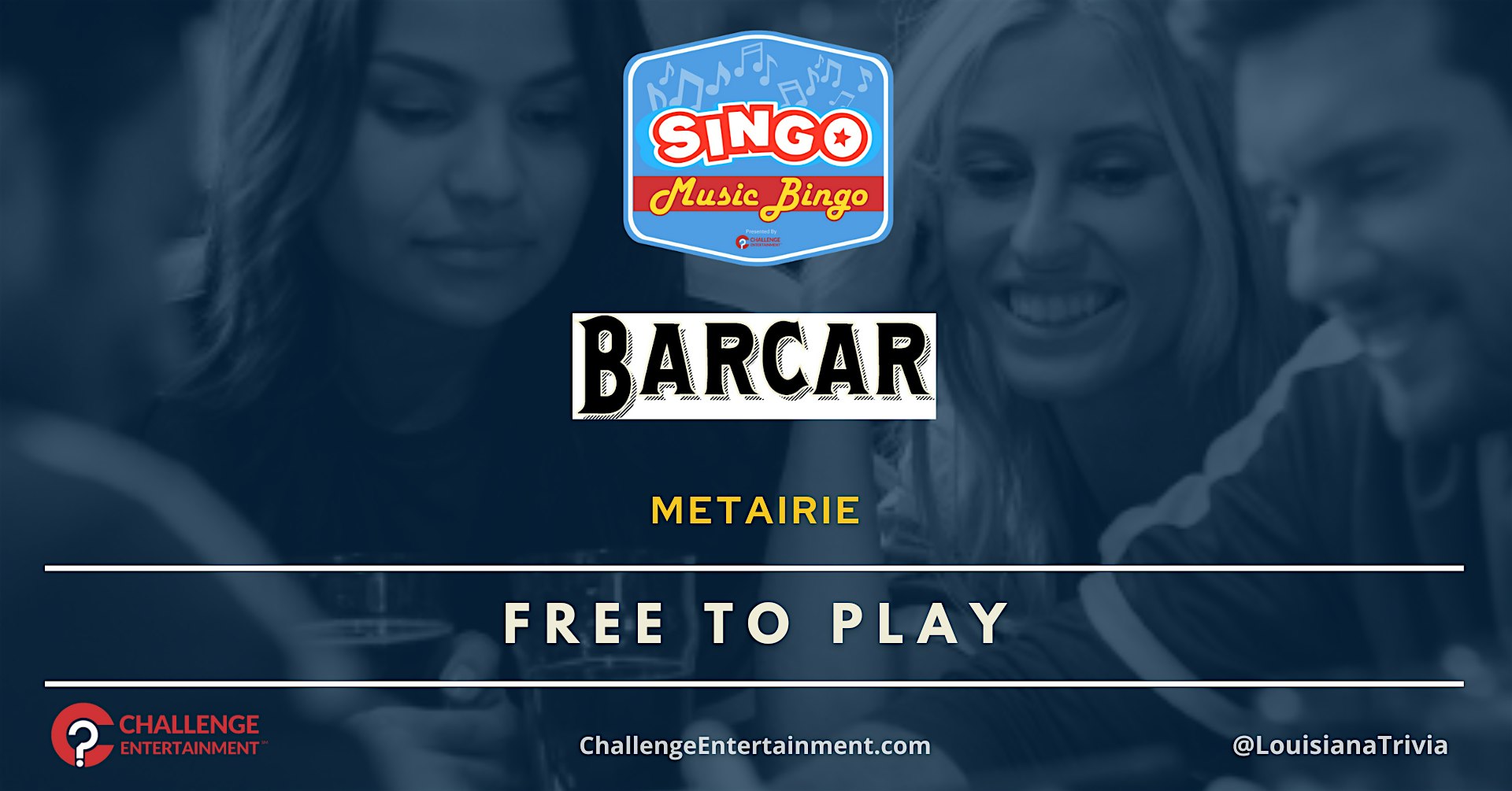 Weekly SINGO Music Bingo Nights at Barcar – Metairie at BARCAR – Metairie, LA Weekly SINGO Music Bingo Nights at Barcar – Metairie at BARCAR – Metairie, LA 5 5 people viewed this event. Weekly SINGO Music Bingo Nights at Barcar – Metairie Tickets-RSVP Link Register for event Date And Time Thursday, April 23rd, 2026 @ 08:00 PM Location 601 Metairie Road, Metairie, LA 70005 Event Types MusicParty or Social Gathering Event Category LouisianaNew Orleans Share With Friends Facebook Twitter Linkedin Xing Pinterest
