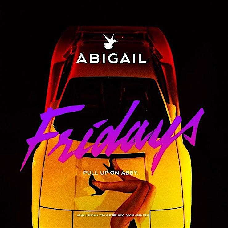 by admin24Feb Abigail Fridays at Abigail – Washington, DC Abigail Fridays at Abigail – Washington, DC 3 3 people viewed this event. The Weekend Starts at Abigail Free Admission Until 12am Open Bar Until 12am R&B – Hip Hop – AfroBeats Tickets-RSVP Link Date And Time Friday, April 24th, 2026 11:00 PM (PST) Venue Abigail Location 1730 M Street Northwest, Washington, DC 20036 Event Types MusicParty or Social Gathering Event Category Washington DC Share With Friends Facebook Twitter Linkedin Xing Pinterest Share This Post: