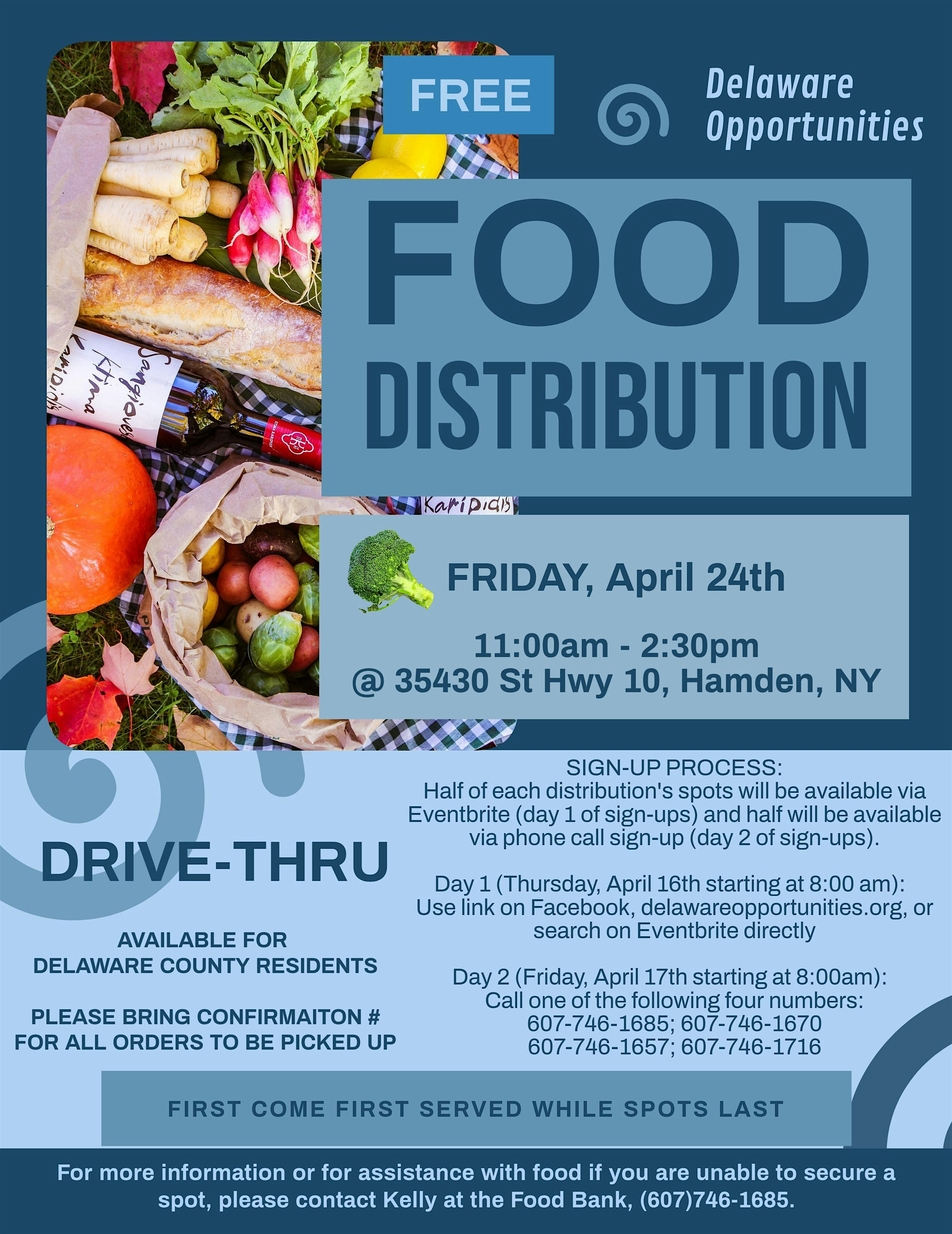 Delaware Opportunities is hosting a Food Distribution on Friday, April 24th from 11:00 am-2:30 pm.