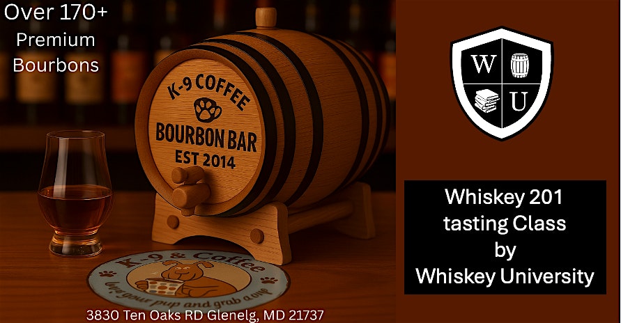 Bourbon 201 Tasting Class by Whiskey University at K-9 Coffee, Glenelg, MD at K-9 & Coffee – Glenelg, MD