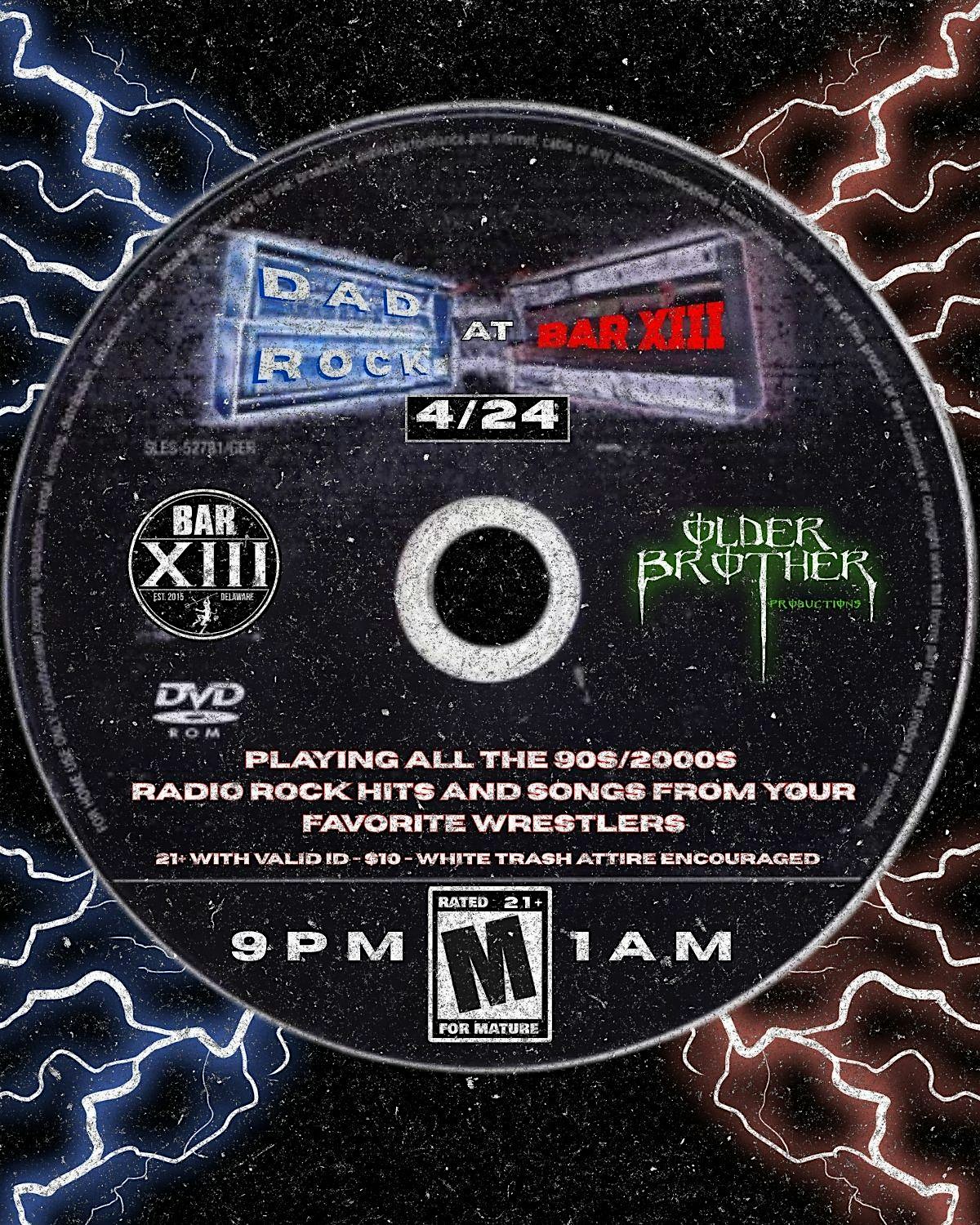 D.A.D. ROCK at Bar XIII – 4/24Dust off your old band tees, break out the jorts, and get ready for a night of pure nostalgia and chaotic fun! D.A.D. ROCK is taking over Bar XIII on April 24th, spinning the biggest 90s & 2000s radio rock hits along with the iconic entrance themes from your favorite wrestlers.From head-banging anthems to songs that instantly transport you back to late-night wrestling and burned CDs, this night is all about loud music, wild energy, and unapologetic throwback vibes.Music: 90s / 2000s Radio Rock + Wrestler Theme Songs