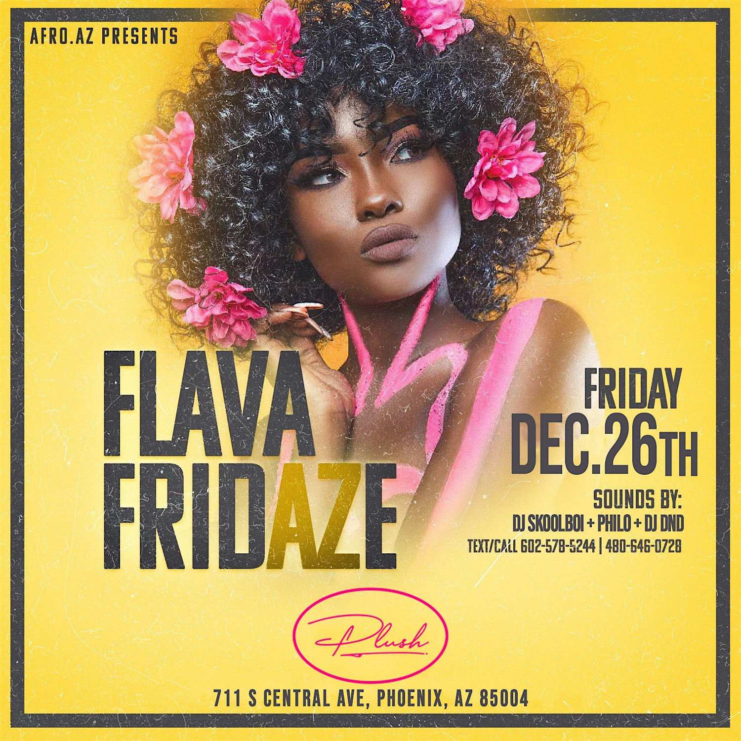 by admin23Feb Flava Fridaze’s at Plush Kitchen & Lounge – Phoenix, AZ Flava Fridaze’s at Plush Kitchen & Lounge – Phoenix, AZ 2 2 people viewed this event. Afro.AZ Presents Flava Friday’s at Plush downtown phx. Come Join us each and every fridays. For some international vibes Tickets-RSVP Link Date And Time Friday, April 24th, 2026 11:00 PM (PST) Venue Plush Kitchen & Lounge Location 711 South Central Avenue, Phoenix, AZ 85004 Event Types MusicParty or Social Gathering Event Category ArizonaPhoenix Share With Friends Facebook Twitter Linkedin Xing Pinterest Share This Post: