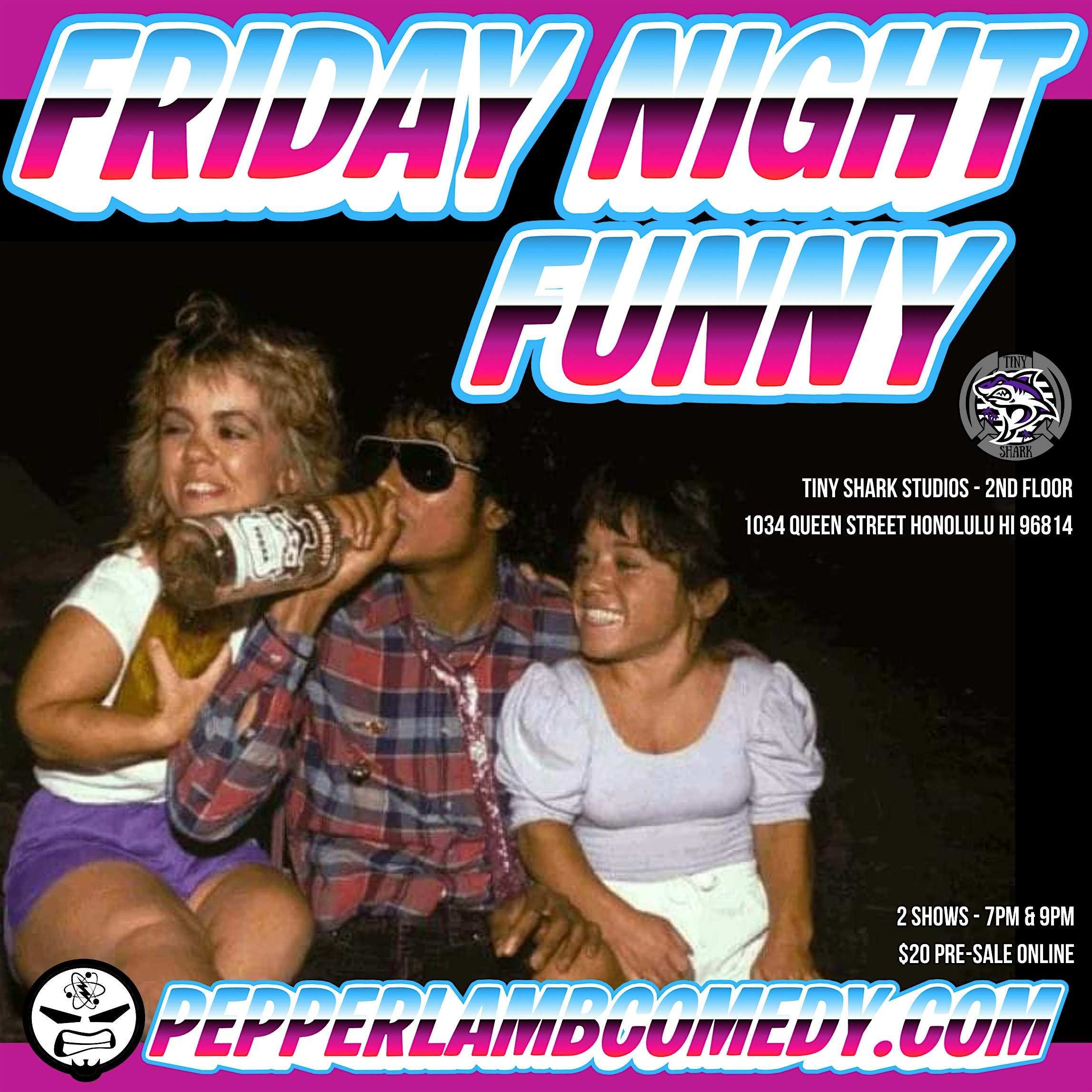 Friday Night Funny at 1034 Queen St 2nd floor – Honolulu, HI Friday Night Funny at 1034 Queen St 2nd floor – Honolulu, HI 3 3 people viewed this event. Get ready to laugh out loud at Friday Night Funny – The best comedy night in town! Tickets-RSVP Link Register for event Date And Time Friday, April 24th, 2026 @ 08:00 PM Location 1034 Queen Street, Honolulu, HI 96814 Event Types Concert or PerformancePerforming & Visual Arts Event Category HawaiiHonolulu Share With Friends Facebook Twitter Linkedin Xing Pinterest