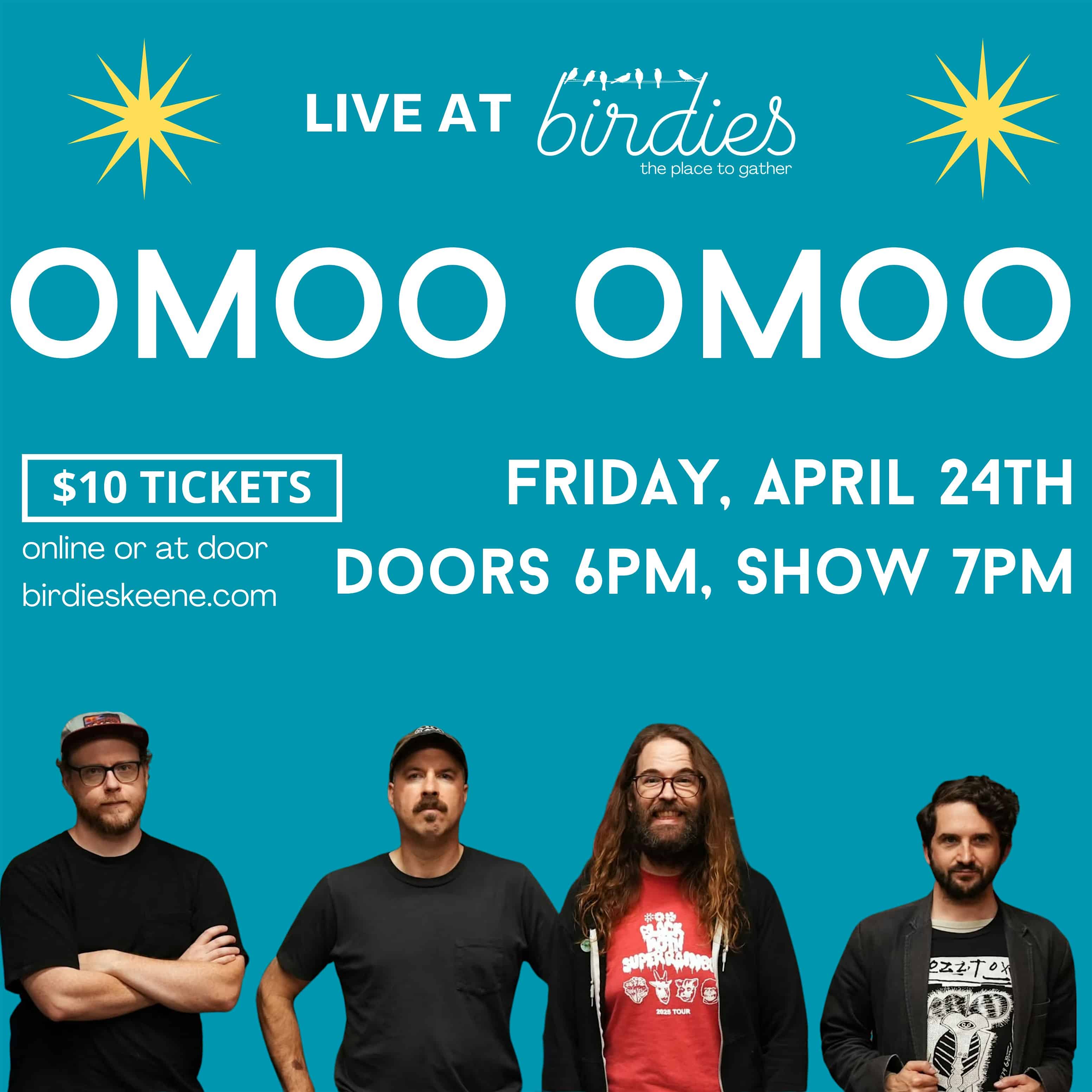 by admin14Feb Omoo Omoo- LIVE at Birdies! at Birdies – Keene, NH Omoo Omoo- LIVE at Birdies! at Birdies – Keene, NH 1 1 people viewed this event. Doors at 6pm, show 7-9pm Tickets-RSVP Link Date And Time Friday, April 24th, 2026 11:00 PM (PST) Venue Birdies Location 18 Main Street, Keene, NH 3431 Event Types Concert or PerformancePerforming & Visual Arts Event Category New Hampshire Share With Friends Facebook Twitter Linkedin Xing Pinterest Share This Post: