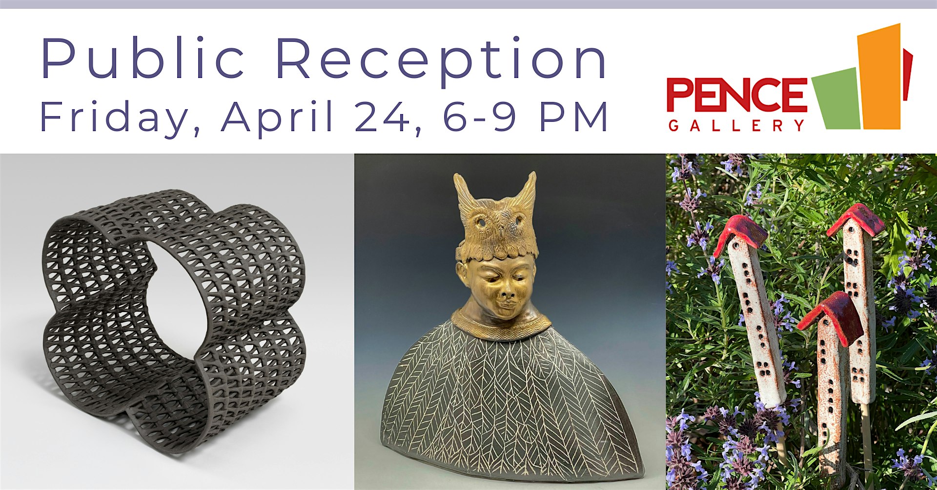 We invite you to join us at the Pence Gallery for a free public reception on April 24, 6-9 PM. We will be open in conjunction with the 2026 California Conference for the Advancement of Ceramic Arts (CCACA). Visitors can enjoy browsing our art exhibits, complimentary wine, and shopping in the Garden Art Sale.