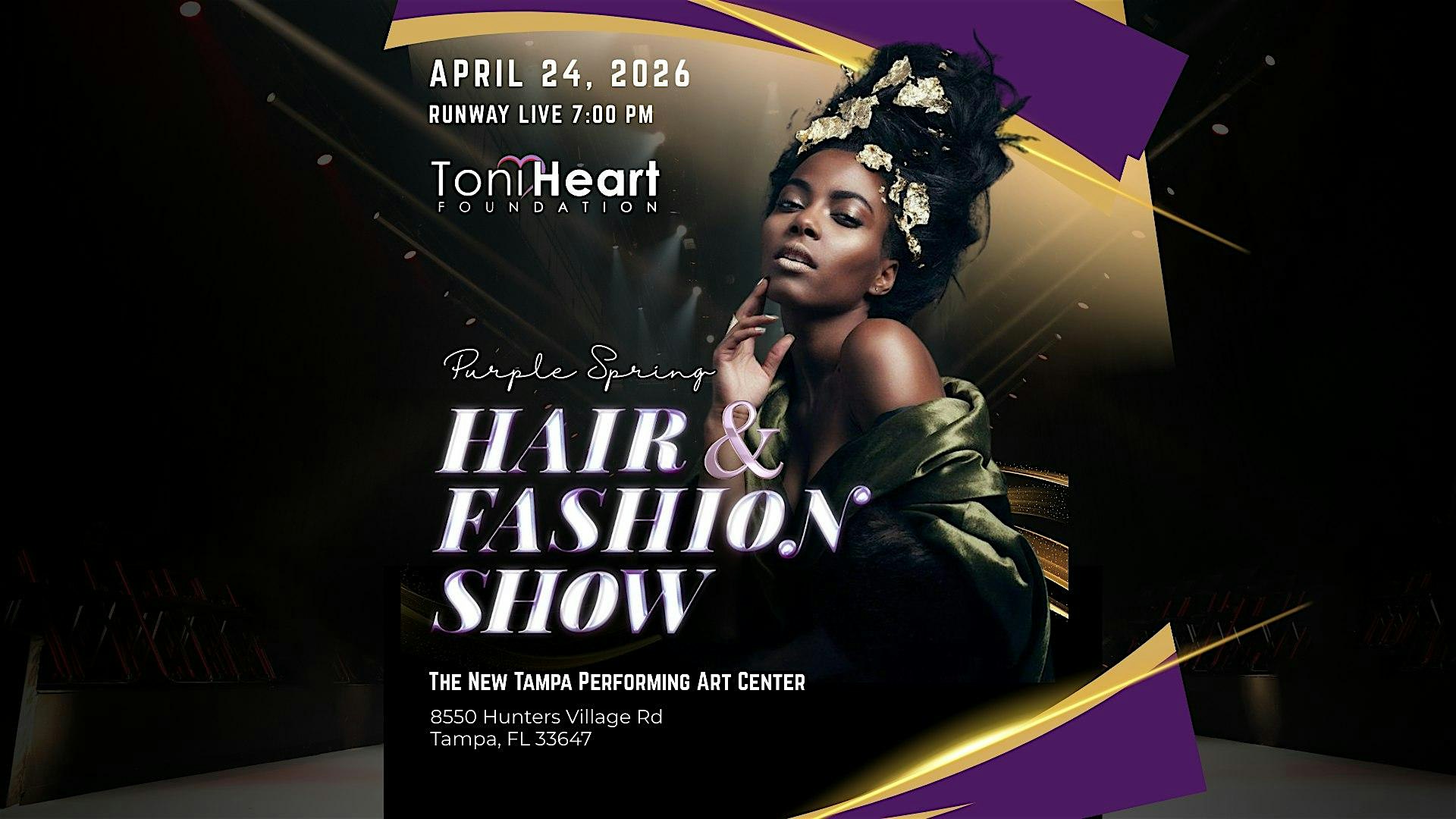 by admin24Feb Purple Spring Fashion Show — Where Style Meets Purpose at New Tampa Performing Arts Center – Tampa, FL Purple Spring Fashion Show — Where Style Meets Purpose at New Tampa Performing Arts Center – Tampa, FL 5 5 people viewed this event. Join us for an unforgettable night where fashion, beauty, and purpose come together! Step into the spotlight on Friday, April 24, 2026 Tickets-RSVP Link Date And Time Friday, April 24th, 2026 @ 07:00 PM Location 8550 Hunters Village Road, Tampa, FL 33647 Event Types Fashion & BeautyParty or Social Gathering Event Category FloridaTampa Share With Friends Facebook Twitter Linkedin Xing Pinterest Share This Post: