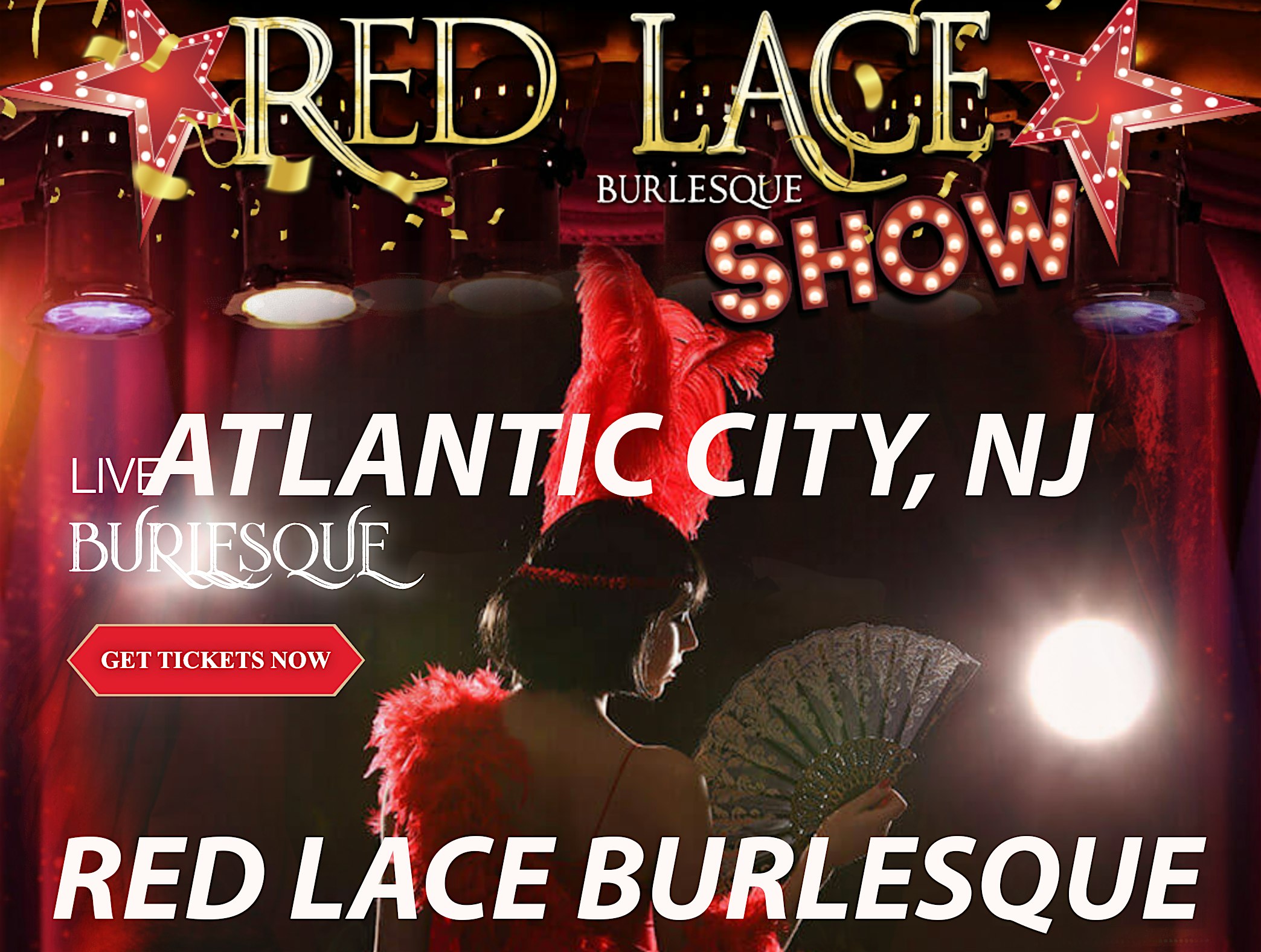 Red Lace Burlesque Show Atlantic City & Variety Show Atlantic City at Red Lace Burlesque Atlantic City – Atlantic City, NJ Red Lace Burlesque Show Atlantic City & Variety Show Atlantic City at Red Lace Burlesque Atlantic City – Atlantic City, NJ 2 2 people viewed this event. Red Lace Burlesque & Variety Show in Atlantic City. Weekly Atlantic City Burlesque and some of the very best variety in town! Tickets-RSVP Link Register for event Date And Time Friday, April 24th, 2026 @ 06:00 PM Location 2832 Boardwalk, Atlantic City, NJ 8401 Event Types Concert or PerformancePerforming & Visual Arts Event Category Atlantic CityNew Jersey Share With Friends Facebook Twitter Linkedin Xing Pinterest