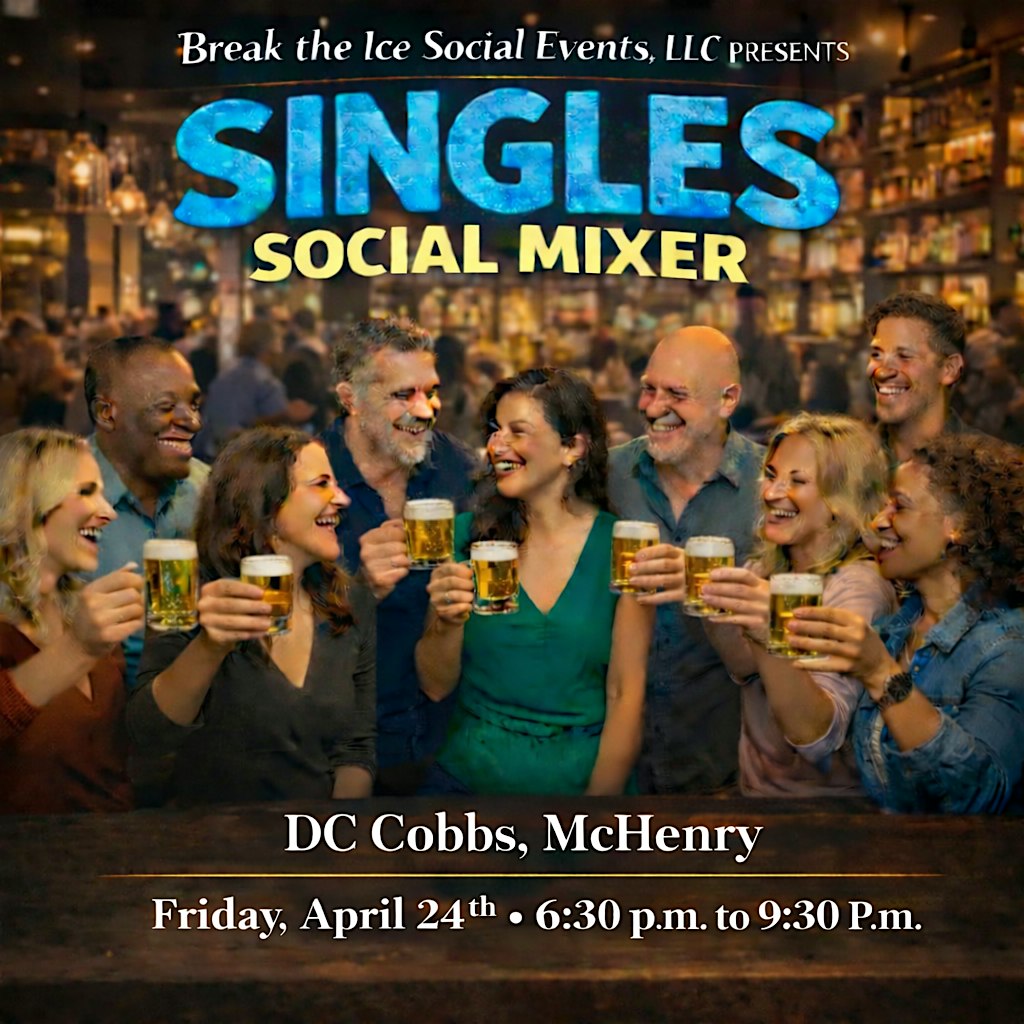 by admin27Feb Singles Social Mixer McHenry, IL DC Cobbs at D.C. Cobb’s – McHenry, IL Singles Social Mixer McHenry, IL DC Cobbs at D.C. Cobb’s – McHenry, IL 2 2 people viewed this event. The mixers are an excellent opportunity to meet new people for a fun night out. So leave the expectations at the door and have fun! Tickets-RSVP Link Date And Time Friday, April 24th, 2026 @ 06:00 PM Location 1204 North Green Street, McHenry, IL 60050 Event Types Food & DrinkParty or Social Gathering Event Category Illinois Share With Friends Facebook Twitter Linkedin Xing Pinterest Share This Post: