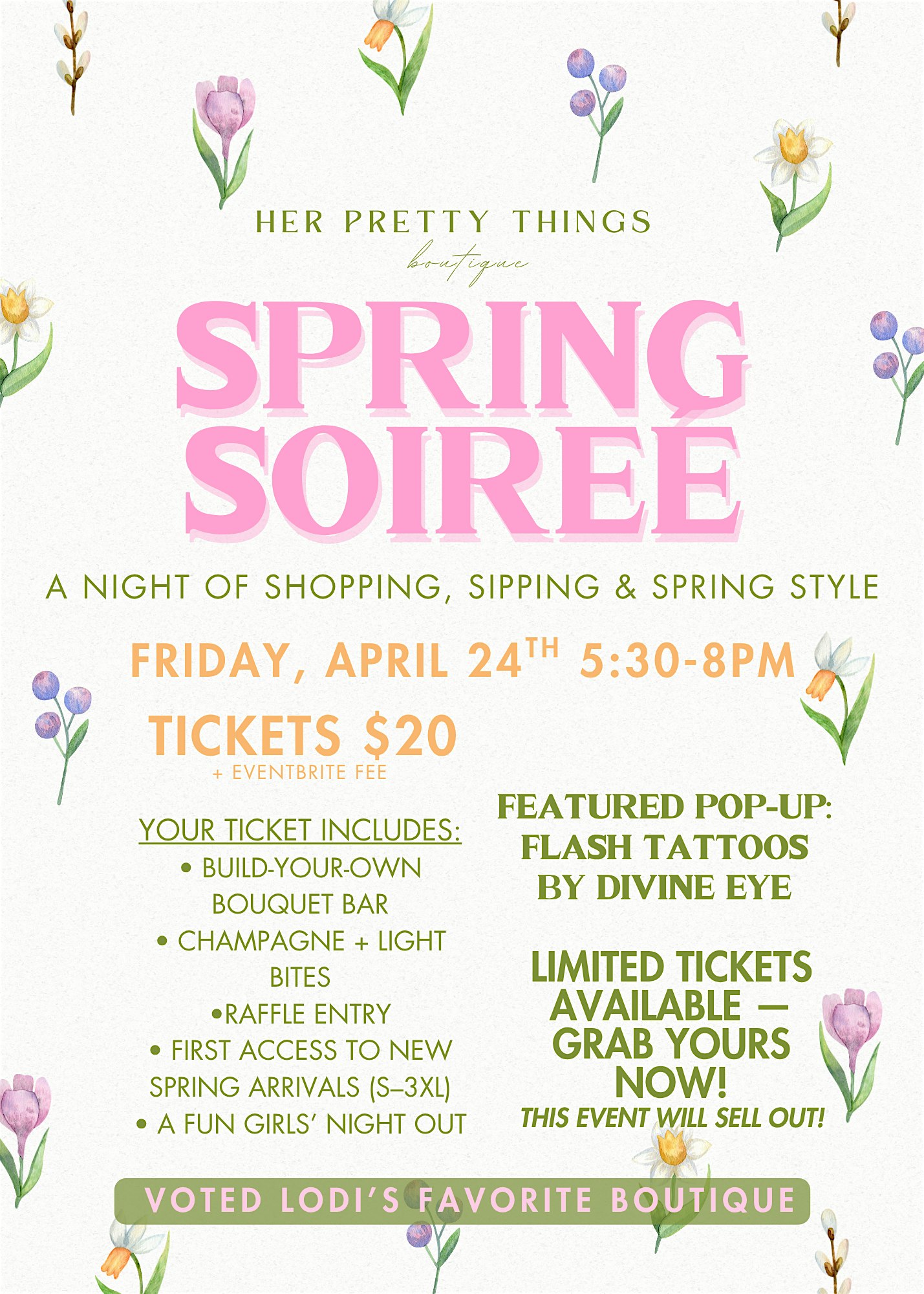 Spring Soireé at Her Pretty Things Boutique at 15 S Sacramento St – Lodi, CA