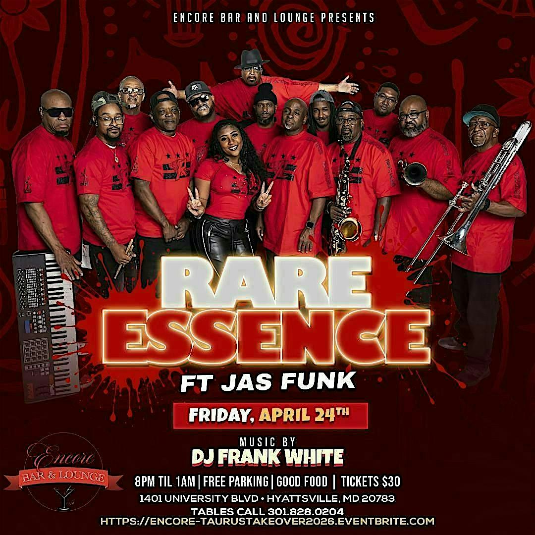 It’s going down at Encore Bar & Lounge with Rare Essence – “The Wickedest Band Alive” ft Jas.Funk and the sounds of DJ Frank White. Meet us there April 24, 2026 at 8:00 pm for a Tantalizing Taurus Takeover. “YOU CAN’T RUN FROM THE CRANK” and you DEFINITELY don’t want to miss this one!!