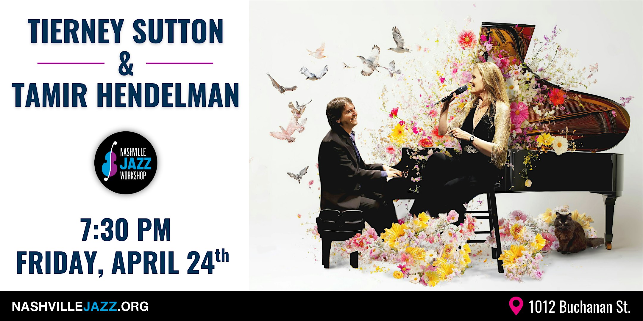 by admin24Feb Tierney Sutton and Tamir Hendelman at Nashville Jazz Workshop – Nashville, TN Tierney Sutton and Tamir Hendelman at Nashville Jazz Workshop – Nashville, TN 3 3 people viewed this event. Nine-time Grammy nominee Tierney Sutton and acclaimed pianist Tamir Hendelman celebrate their first recording together, SPRING, at NJW! Tickets-RSVP Link Date And Time Friday, April 24th, 2026 07:00 PM (PST) Venue Nashville Jazz Workshop Location 1012 Buchanan Street, Nashville, TN 37208 Event Types Concert or PerformanceMusic Event Category NashvilleTennessee Share With Friends Facebook Twitter Linkedin Xing Pinterest Share This Post: