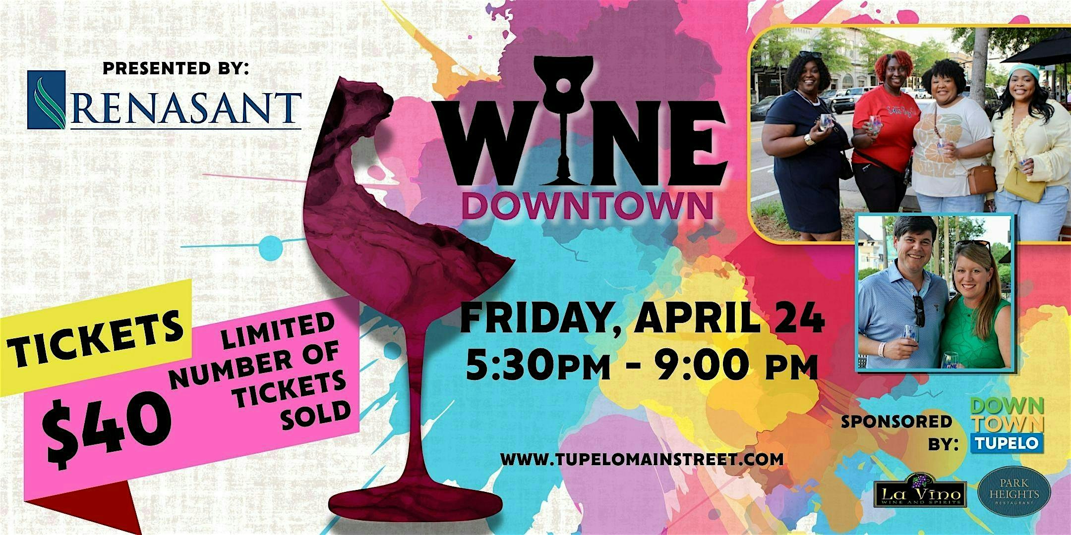 A Downtown spring tradition — Wine Downtown presented by Renasant invites you to sip, stroll local shops, and savor curated wines & bites!