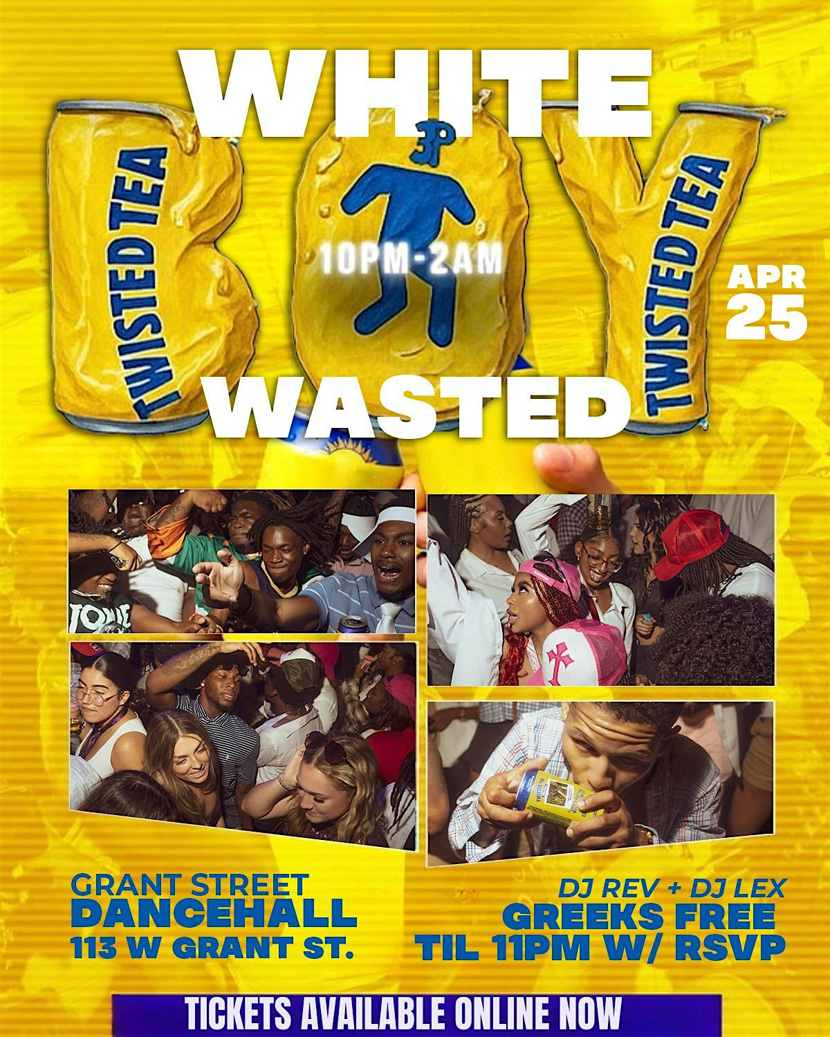 3P Ent Presents:White Boy Wasted 2 at Grantstreet Dancehall – Lafayette, LA 3P Ent Presents:White Boy Wasted 2 at Grantstreet Dancehall – Lafayette, LA 3 3 people viewed this event. By popular demand we bring you White Boy wasted 2 ! This event will sellout Tickets-RSVP Link Register for event Date And Time Saturday, April 25th, 2026 @ 10:00 PM Location Grantstreet Dancehall 113 W. Grant st., Lafayette, LA 70501 Event Types Party or Social GatheringPerforming & Visual Arts Event Category Louisiana Share With Friends Facebook Twitter Linkedin Xing Pinterest