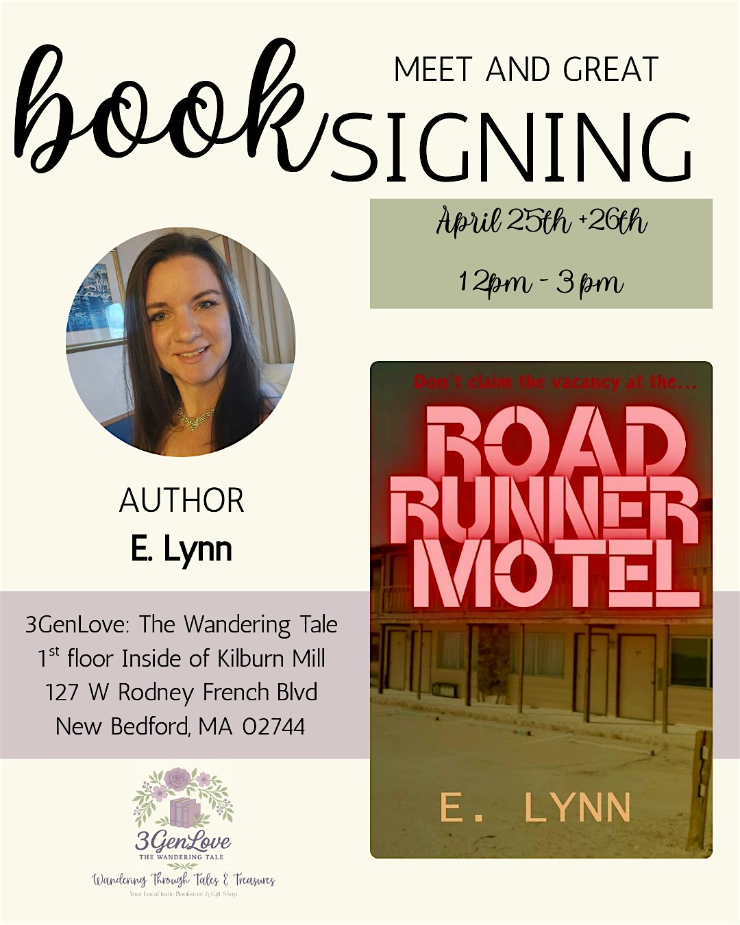 Join us on Saturday, April 25th from 12-3pm and Sunday, April 26th from 12-3pm for a special meet & greet with E. Lynn right inside 3GenLove: The Wandering Tale at Kilburn Mill!