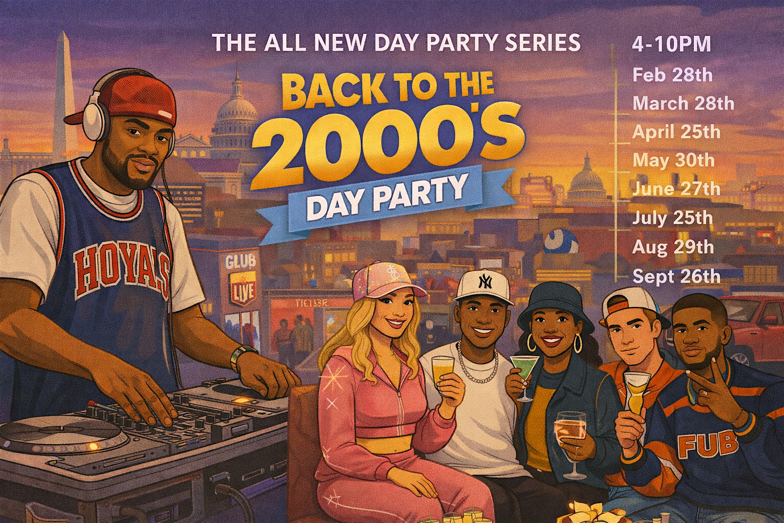 Back to the 2000’s Rooftop Day Party at Lucha Rosa – Washington, DC Back to the 2000’s Rooftop Day Party at Lucha Rosa – Washington, DC 5 5 people viewed this event. Back to the 2000’s Day Party ✨ Rooftop energy, throwback hits, food & drinks, city views. Monthly experience. 21+ only Tickets-RSVP Link Register for event Date And Time Saturday, April 25th, 2026 @ 04:00 PM Location Lucha Rosa 1011 K Street Northwest, Washington, DC 20001 Event Types MusicParty or Social Gathering Event Category Washington DC Share With Friends Facebook Twitter Linkedin Xing Pinterest