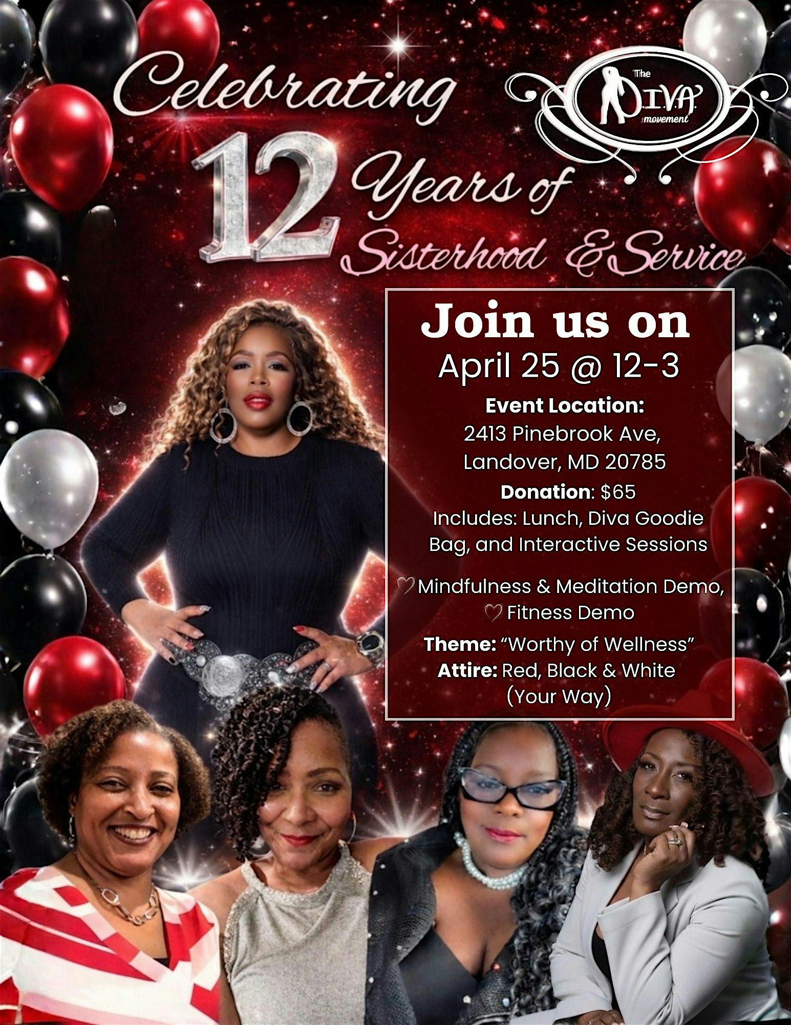 by admin23Feb Diva Movement Association Inc’s 12 Year Anniversary, “Worthy of Wellness” at 2413 Pinebrook Ave – Greater Landover, MD Diva Movement Association Inc’s 12 Year Anniversary, “Worthy of Wellness” at 2413 Pinebrook Ave – Greater Landover, MD 2 2 people viewed this event. Join the CEO, Marnell Small and the Ladies of The Diva Movement Association Inc, as we celebrate 12 years of Sisterhood and Service. Tickets-RSVP Link Date And Time Saturday, April 25th, 2026 12:00 PM (PST) Venue 2413 Pinebrook Ave Location 2413 Pinebrook Avenue, Greater Landover, MD 20785 Event Types Party or Social Gathering Event Category Maryland Share With Friends Facebook Twitter Linkedin Xing Pinterest Share This Post: