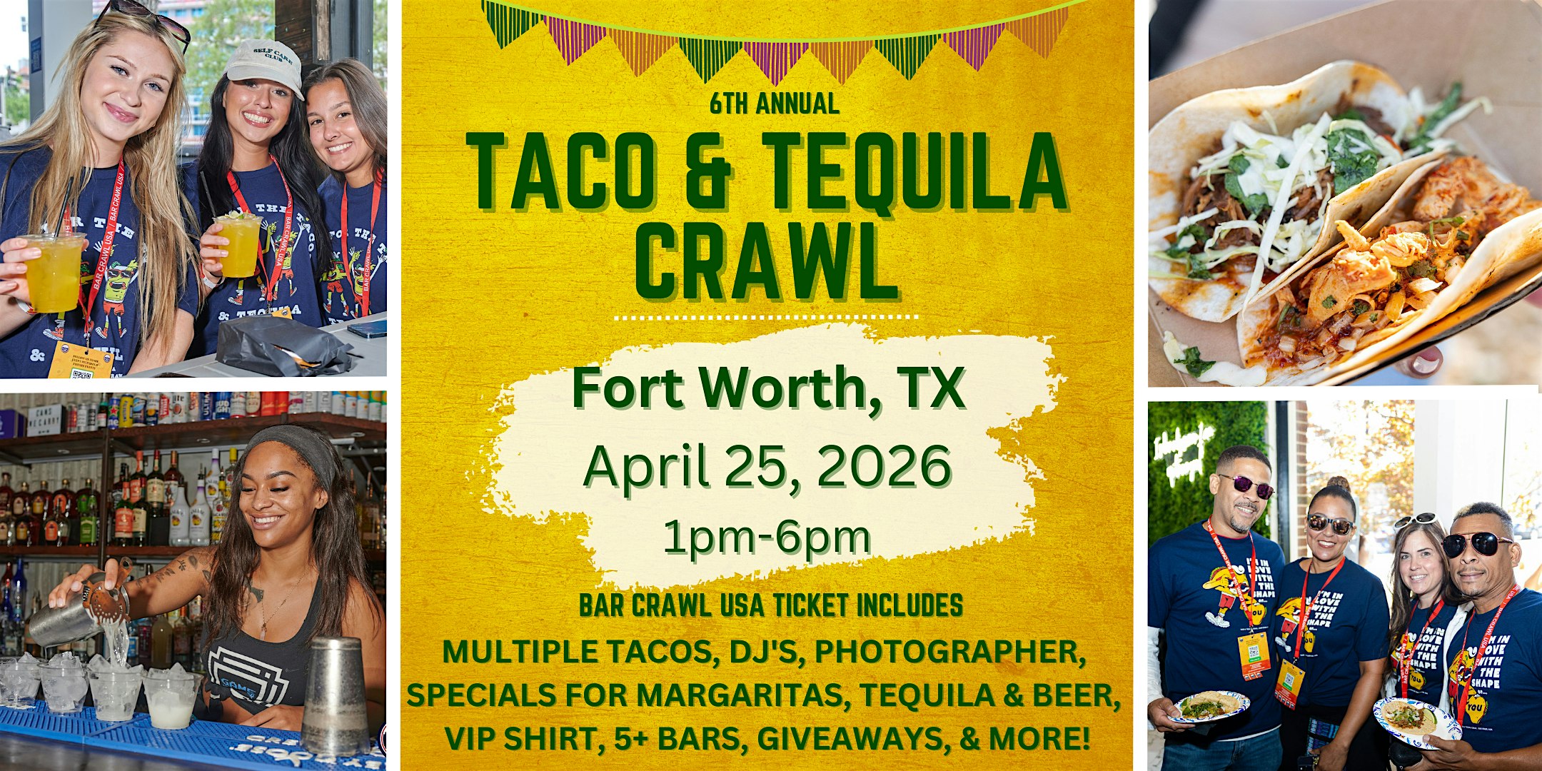Fort Worth Taco & Tequila Bar Crawl: 6th Annual, April 25th at Bar 2909 (VIP 12pm check-in & General Admission 1pm until 4pm) – Fort Worth, TX