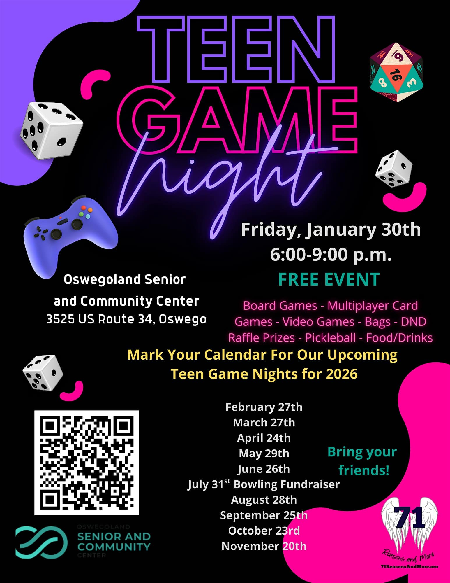 by admin14Feb Friday Night Out at Oswegoland Senior and Community Center – Oswego, IL Friday Night Out at Oswegoland Senior and Community Center – Oswego, IL 1 1 people viewed this event. Free food games for teens and young adults. A safe space for you to come out and enjoy time with friends and meet new ones. Tickets-RSVP Link Date And Time Saturday, April 25th, 2026 12:00 AM (PST) Venue Oswegoland Senior and Community Center Location 3525 Walter Payton Memorial Highway, Oswego, IL 60543 Event Types Food & DrinkParty or Social Gathering Event Category Illinois Share With Friends Facebook Twitter Linkedin Xing Pinterest Share This Post: