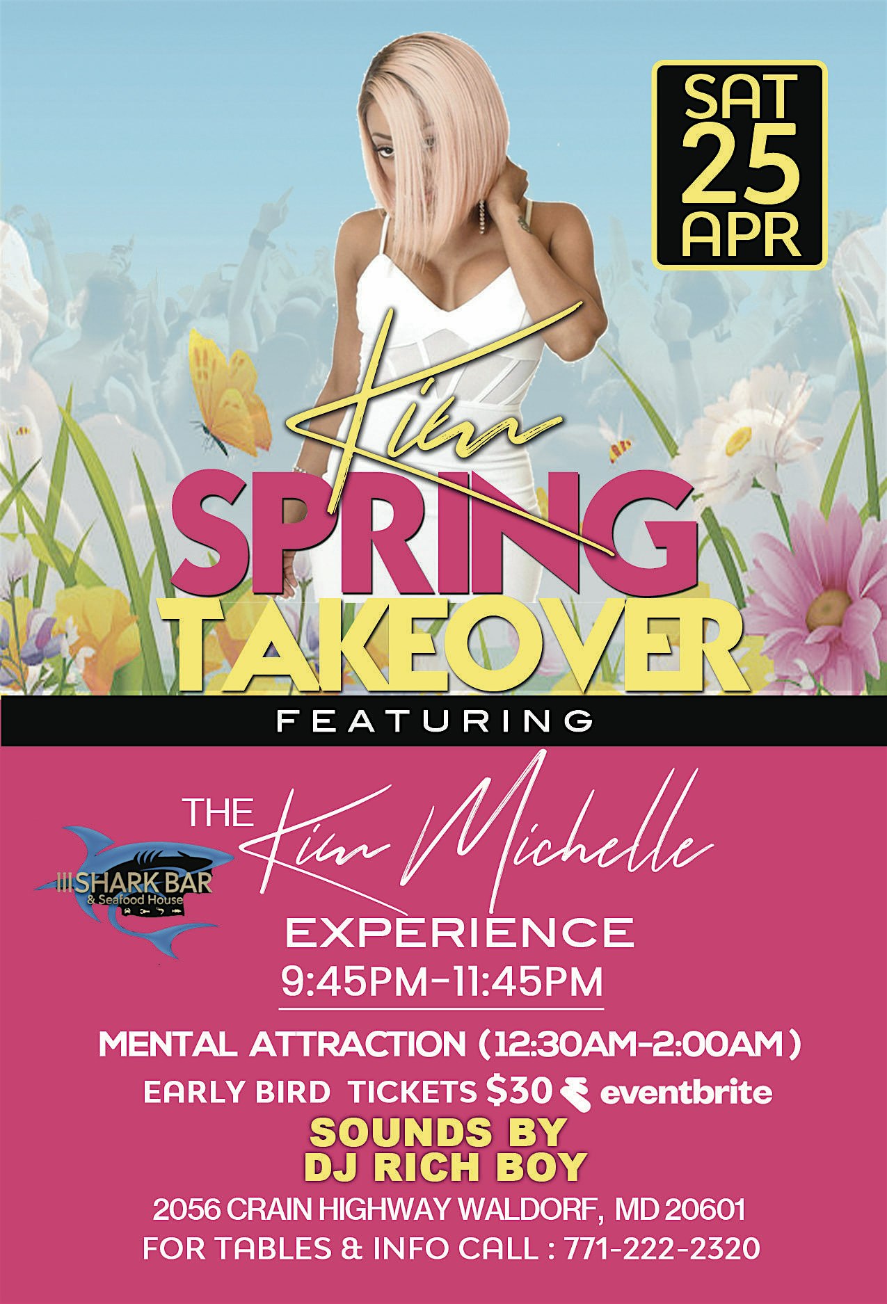 by admin24Feb KIM SPRING TAKEOVER at 2056 Crain Hwy – Waldorf, MD KIM SPRING TAKEOVER at 2056 Crain Hwy – Waldorf, MD 1 1 people viewed this event. we’re are back for another epic night of Kim Michelle Experience at Shark Bar with DJ RichBoy! Event is 21+ Advance tickets are recommended Tickets-RSVP Link Date And Time Saturday, April 25th, 2026 09:00 PM (PST) Venue 2056 Crain Hwy Location 2056 Crain Highway, Waldorf, MD 20601 Event Types MusicParty or Social Gathering Event Category MarylandNational Harbor Share With Friends Facebook Twitter Linkedin Xing Pinterest Share This Post: