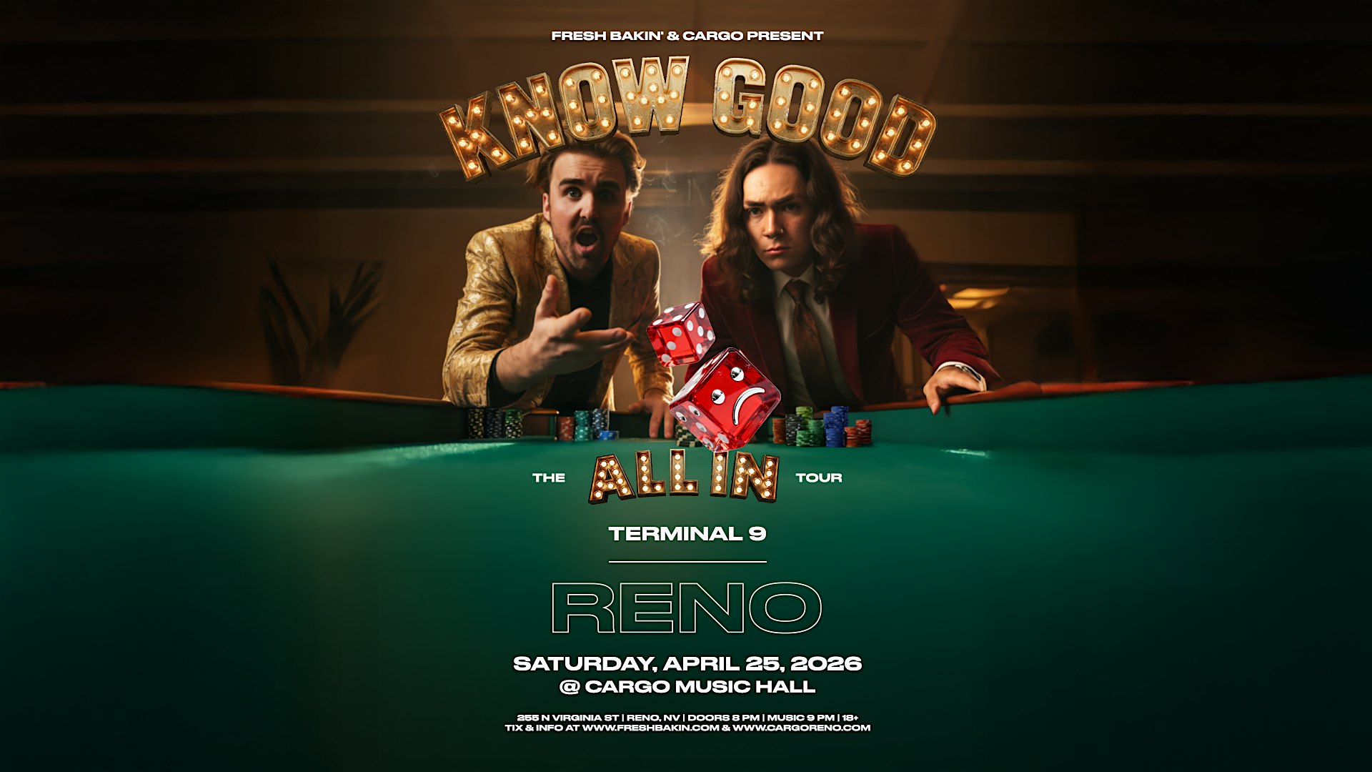 by admin24Feb Know Good at Cargo Concert Hall at Cargo : Whitney Peak Hotel – Reno, NV Know Good at Cargo Concert Hall at Cargo : Whitney Peak Hotel – Reno, NV 2 2 people viewed this event. Fresh Bakin’ & Cargo Concert Hall presents Know Good! Tickets-RSVP Link Date And Time Saturday, April 25th, 2026 08:00 PM (PST) Venue Cargo : Whitney Peak Hotel Location 255 North Virginia Street, Reno, NV 89501 Event Types Concert or PerformanceMusic Event Category NevadaReno Share With Friends Facebook Twitter Linkedin Xing Pinterest Share This Post: