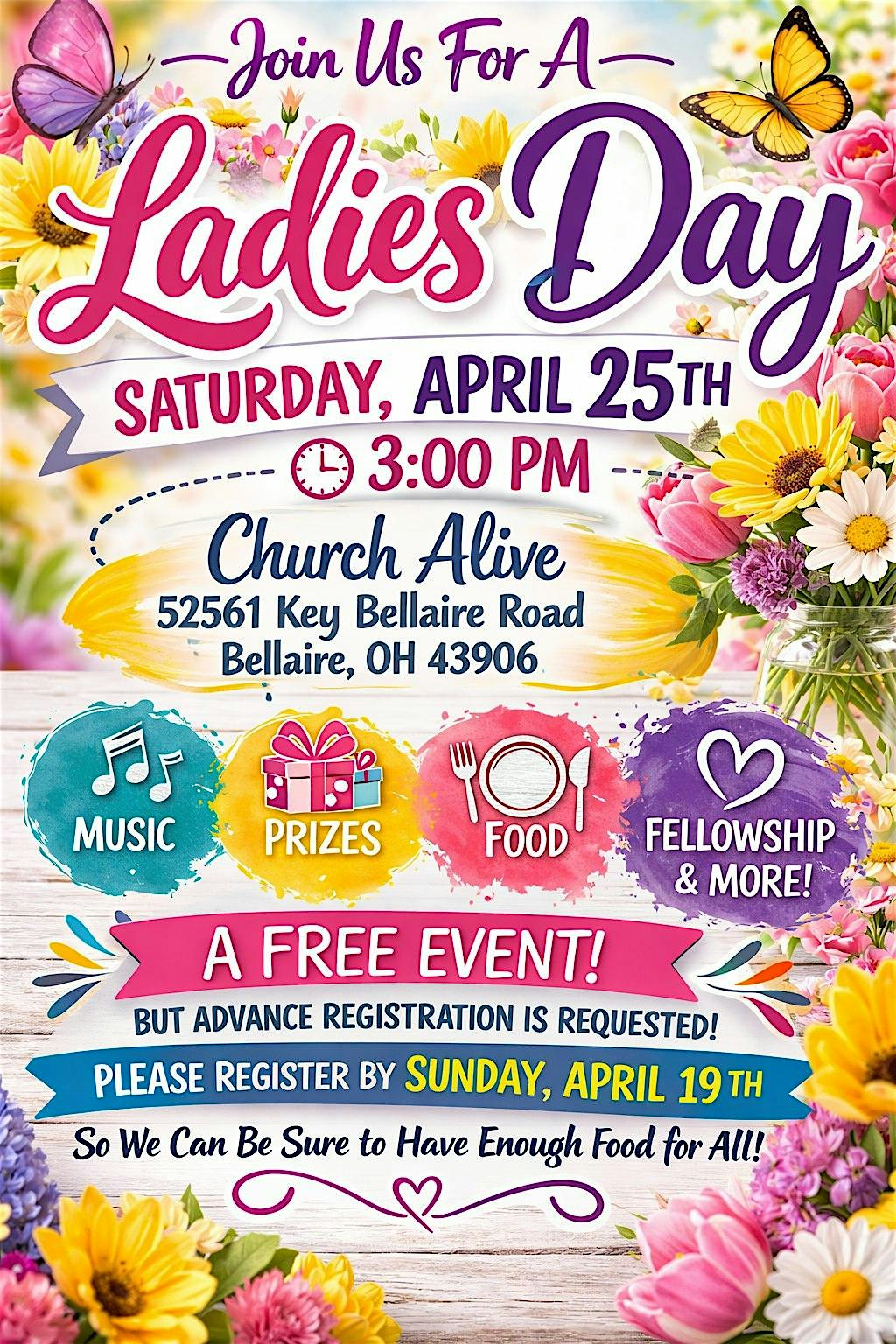 We are excited to be hosting a Ladies Day on Saturday, April 25, 2026 beginning at 3:00 p.m. Come enjoy food, fun, and fellowship!