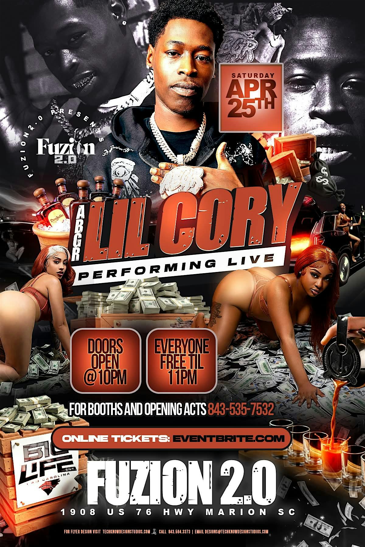 Lil Cory at Club Fuzion – MARION, SC Lil Cory at Club Fuzion – MARION, SC 3 3 people viewed this event. Fuzion2.0 Presents ABGR LIL CORY Performing Live SATURDAY APRIL 25, 2025 Doors Open @10PM Everyone FREE TIL 11PM FUZION 2.0 1908 US 76 HW Tickets-RSVP Link Register for event Date And Time Saturday, April 25th, 2026 @ 10:00 PM Location Club Fuzion Club Fuzion 1908 E Hwy 76 Marion SC, MARION, SC 29571 Event Types Concert or PerformanceMusic Event Category South Carolina Share With Friends Facebook Twitter Linkedin Xing Pinterest