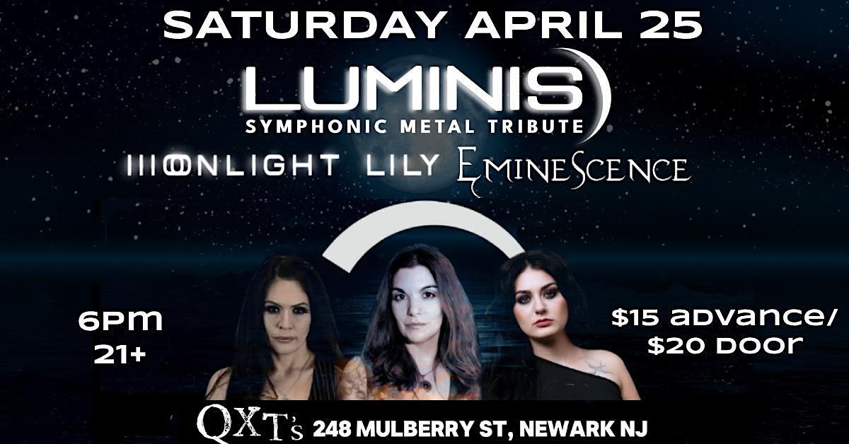 by admin24Feb LUMINIS + EMINESCENCE + MOONLIGHT LILY … live @ QXT’s at QXT’s Nightclub – Newark, NJ LUMINIS + EMINESCENCE + MOONLIGHT LILY … live @ QXT’s at QXT’s Nightclub – Newark, NJ 3 3 people viewed this event. LUMINIS + EMINESCENCE + MOONLIGHT LILY … live @ QXT’s Tickets-RSVP Link Date And Time Saturday, April 25th, 2026 06:00 PM (PST) Venue QXT's Nightclub Location 248 Mulberry Street, Newark, NJ 7102 Event Types Concert or PerformanceMusic Event Category New Jersey Share With Friends Facebook Twitter Linkedin Xing Pinterest Share This Post:
