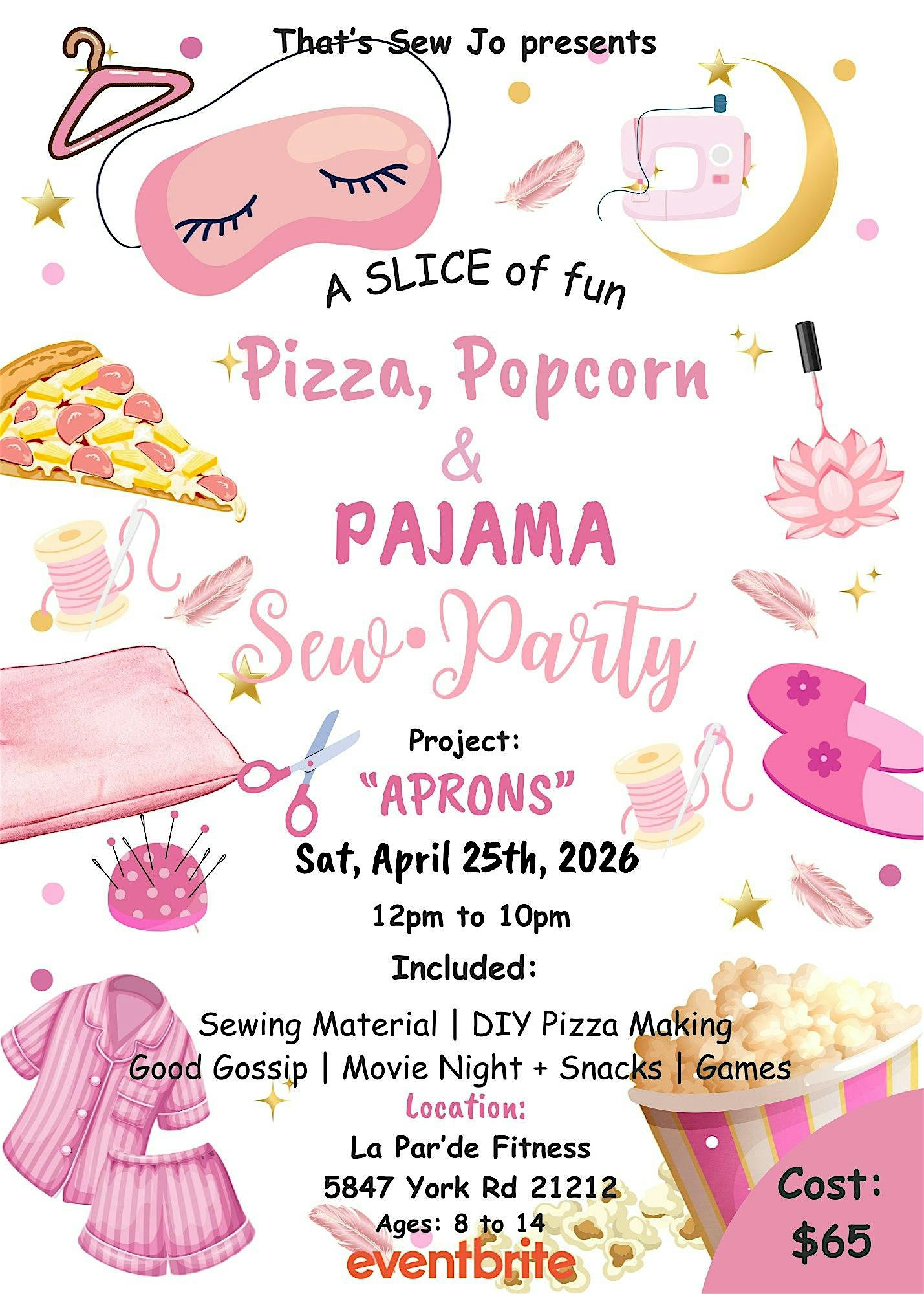 by admin27Feb Pizza, Popcorn & Pajama: Sew Party(DROP-OFF) at La Par’de Fitness – Baltimore, MD Pizza, Popcorn & Pajama: Sew Party(DROP-OFF) at La Par’de Fitness – Baltimore, MD 2 2 people viewed this event. Bring your cutest PJs and get ready for a fun sewing party with pizza, popcorn & all the GIRLIE VIBES! Tickets-RSVP Link Date And Time Saturday, April 25th, 2026 @ 12:00 PM Location 5847 York Road, Baltimore, MD 21212 Event Types Party or Social Gathering Event Category BaltimoreMaryland Share With Friends Facebook Twitter Linkedin Xing Pinterest Share This Post: