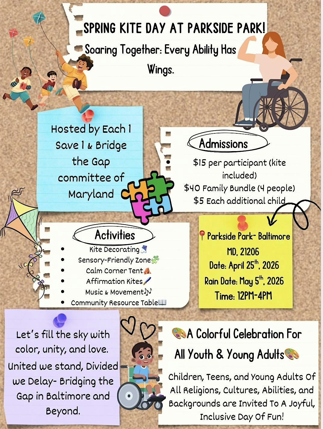 by admin13Feb Spring Kite Day at Parkside Drive Playground – Baltimore, MD Spring Kite Day at Parkside Drive Playground – Baltimore, MD 1 1 people viewed this event. This event brings together people of all ages for a fun-filled day of connection, laughter, and community. Tickets-RSVP Link Date And Time Saturday, April 25th, 2026 04:00 PM (PST) Venue Parkside Drive Playground Location 4600 Parkside Drive, Baltimore, MD 21206 Event Types Community & CultureParty or Social Gathering Event Category BaltimoreMaryland Share With Friends Facebook Twitter Linkedin Xing Pinterest Share This Post: