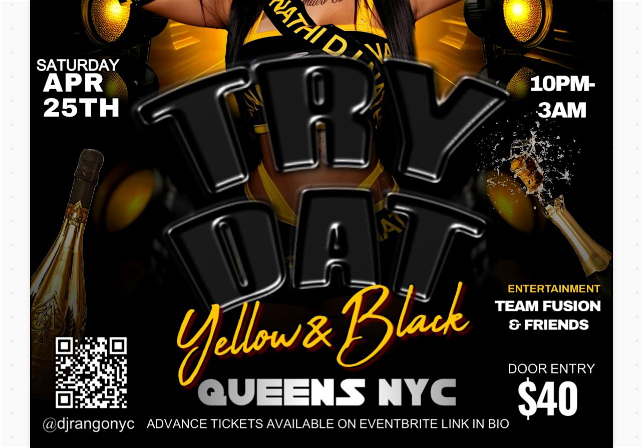 by admin23Feb TRY DAT (YELLOW & BLACK)pt6 at Moonlight Corner – Queens, NY TRY DAT (YELLOW & BLACK)pt6 at Moonlight Corner – Queens, NY 2 2 people viewed this event. DJ RANGO 6TH ANNUAL BIRTHDAY CELEBRATION { TRY DAT } THE LADIES FAVORITE EVENT !!!! 2026 CONCEPT YELLOW & BLACK COME DRESSED TO IMPRESS %% Tickets-RSVP Link Date And Time Saturday, April 25th, 2026 10:00 PM (PST) Venue Moonlight Corner Location 227-02 Linden Boulevard, Queens, NY 11411 Event Types MusicParty or Social Gathering Event Category New YorkNew York City Share With Friends Facebook Twitter Linkedin Xing Pinterest Share This Post: