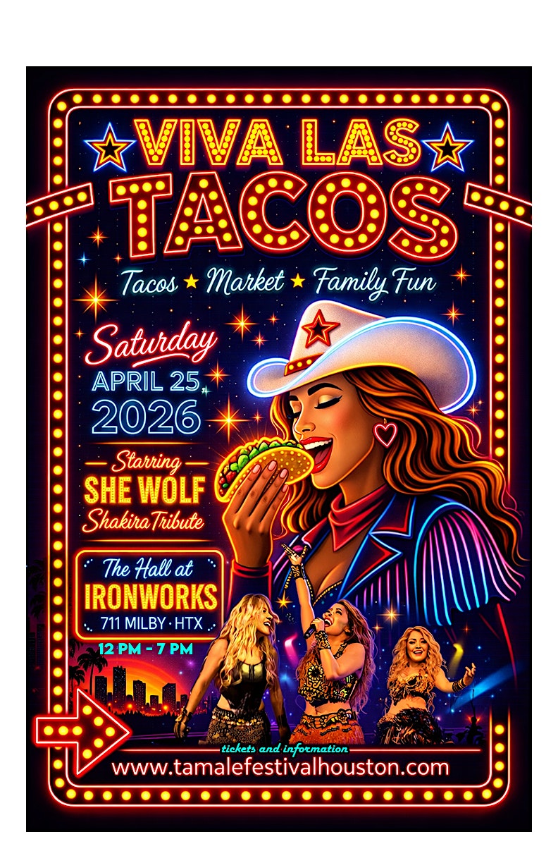 Viva Las Tacos at Ironworks – Houston, TX Viva Las Tacos at Ironworks – Houston, TX 2 2 people viewed this event. A vibrant Taco Fest featuring LIVE MUSIC by SheWolf, the Shakira Tribute band. Lots of TACOS, shopping from local merchants and cold drink Tickets-RSVP Link Register for event Date And Time Saturday, April 25th, 2026 @ 12:00 PM Location 711 Milby Street, Houston, TX 77023 Event Types Festival or FairFood & Drink Event Category HoustonTexas Share With Friends Facebook Twitter Linkedin Xing Pinterest