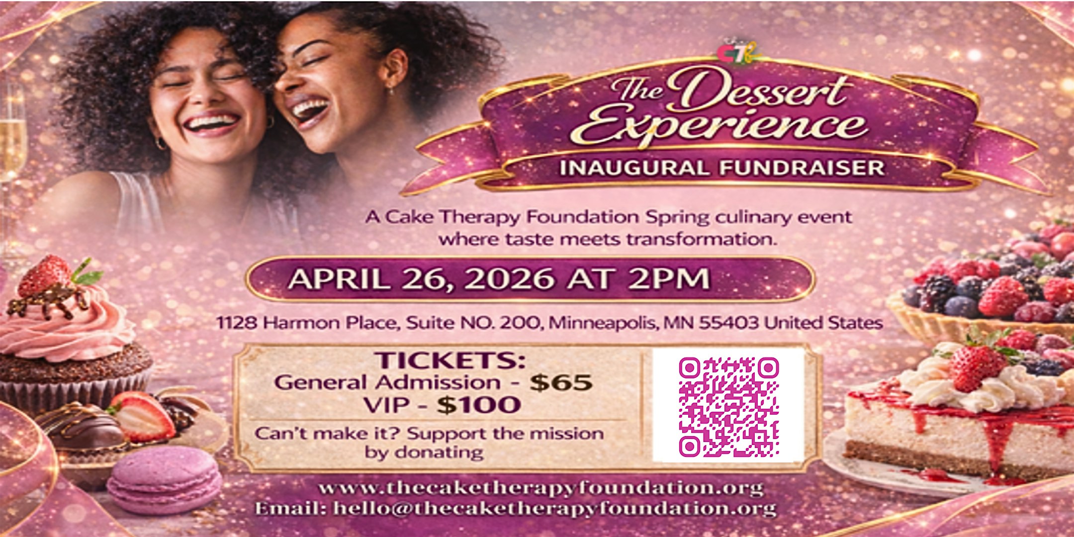 Cake Therapy Dessert Experience: A Fundraising Evening of Desserts at Black Business Enterprises – Minneapolis, MN Cake Therapy Dessert Experience: A Fundraising Evening of Desserts at Black Business Enterprises – Minneapolis, MN 1 1 people viewed this event. An Evening of Desserts, Community & Impact featuring curated desserts, community connection, in support of Cake Therapy’s youth programs. Tickets-RSVP Link Register for event Date And Time Sunday, April 26th, 2026 @ 02:00 PM Location 1128 Harmon Place, Minneapolis, MN 55403 Event Types Dinner or GalaFood & Drink Event Category MinneapolisMinnesota Share With Friends Facebook Twitter Linkedin Xing Pinterest