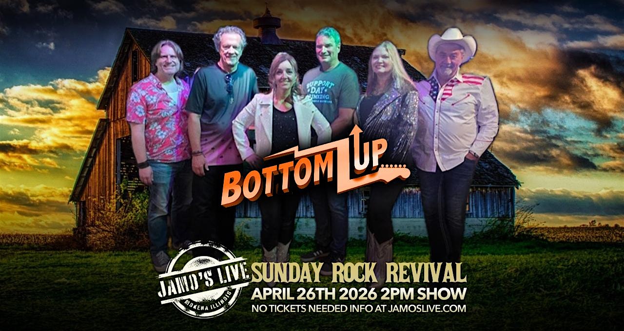 by admin27Feb Sunday Rock Revival w/ Bottomz Up at Jamo’s Live at Jamo’s Live – Mokena, IL Sunday Rock Revival w/ Bottomz Up at Jamo’s Live at Jamo’s Live – Mokena, IL 2 2 people viewed this event. Get ready to rock out Sunday night with Bottomz Up jammin’ live at Jamo’s—good vibes only! Tickets-RSVP Link Date And Time Sunday, April 26th, 2026 @ 02:00 PM Location 10160 191st Street, Mokena, IL 60448 Event Types Concert or PerformanceMusic Event Category Illinois Share With Friends Facebook Twitter Linkedin Xing Pinterest Share This Post: